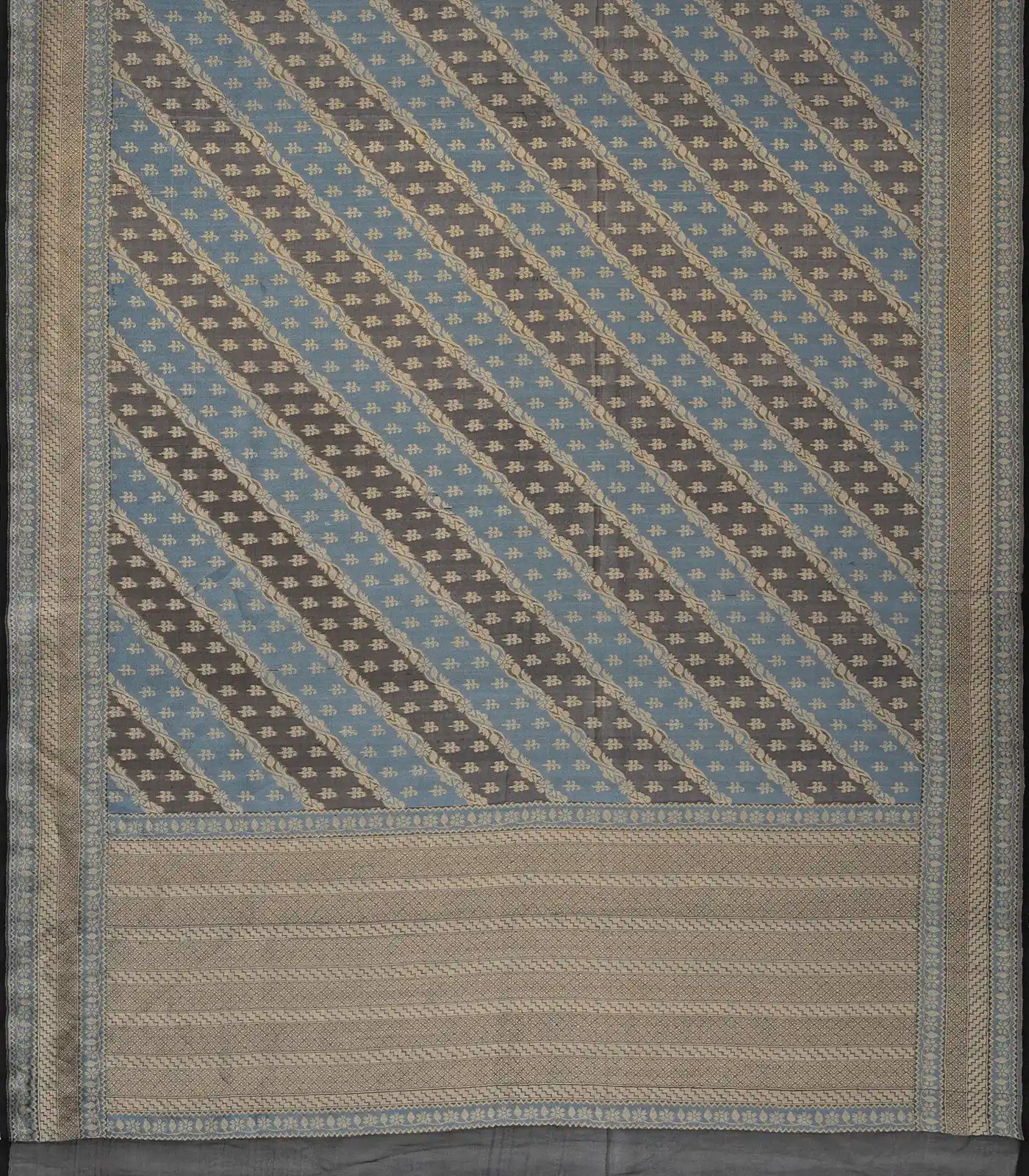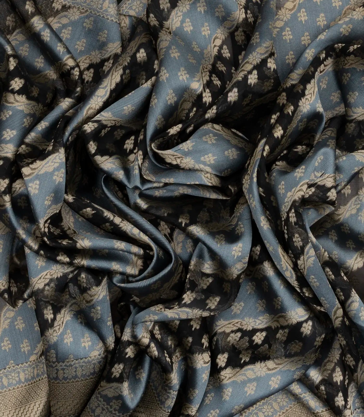 This handwoven organza soft silk saree is filled with floral jaal motifs in grey & black body along with border and pallu