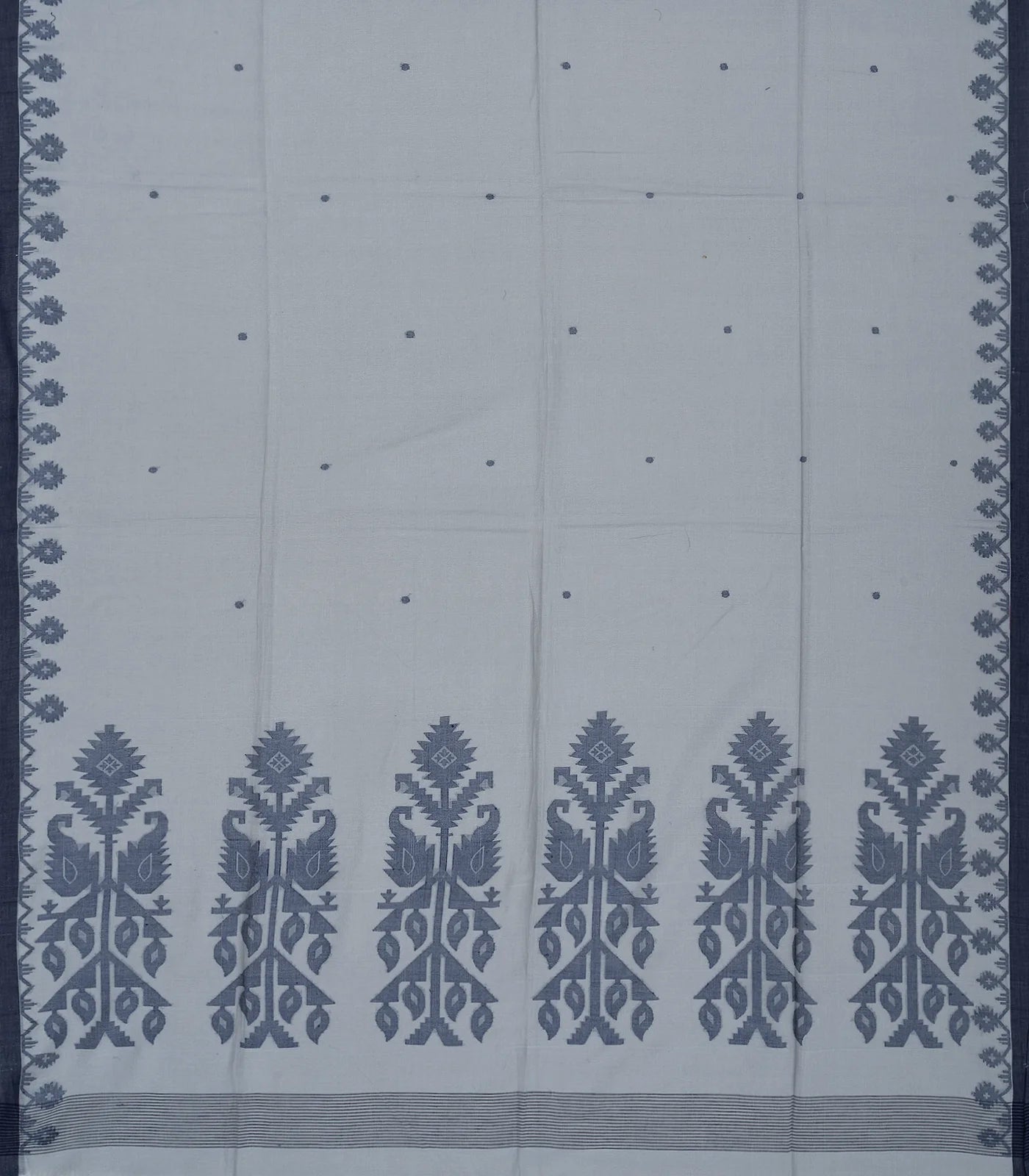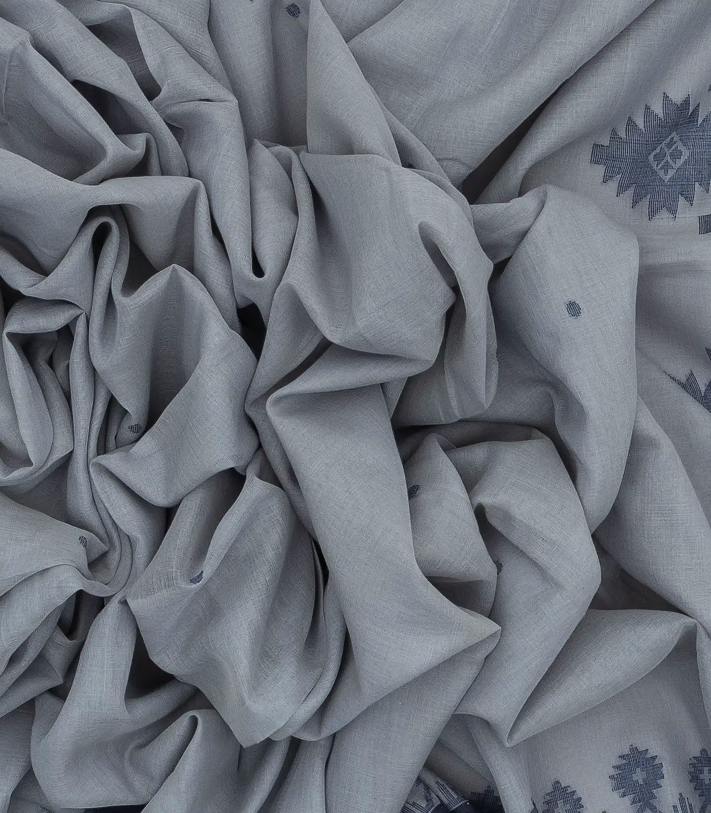 Grey Handloom Bengal Cotton Saree With Coin Buttas