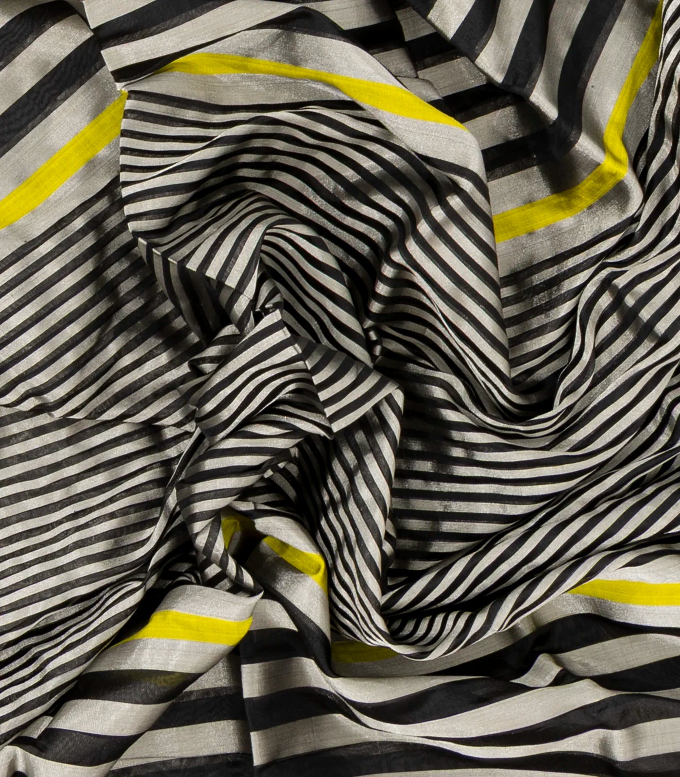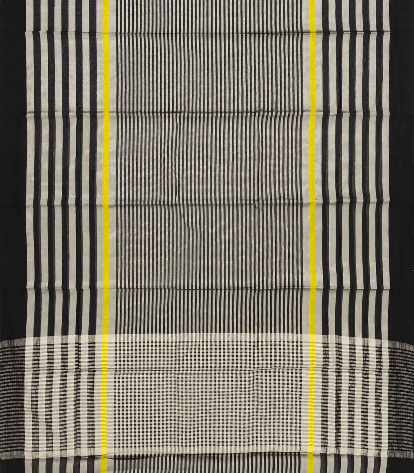 Grey Handloom Chanderi Cotton Tissue Saree With Black Stripes-CC1341