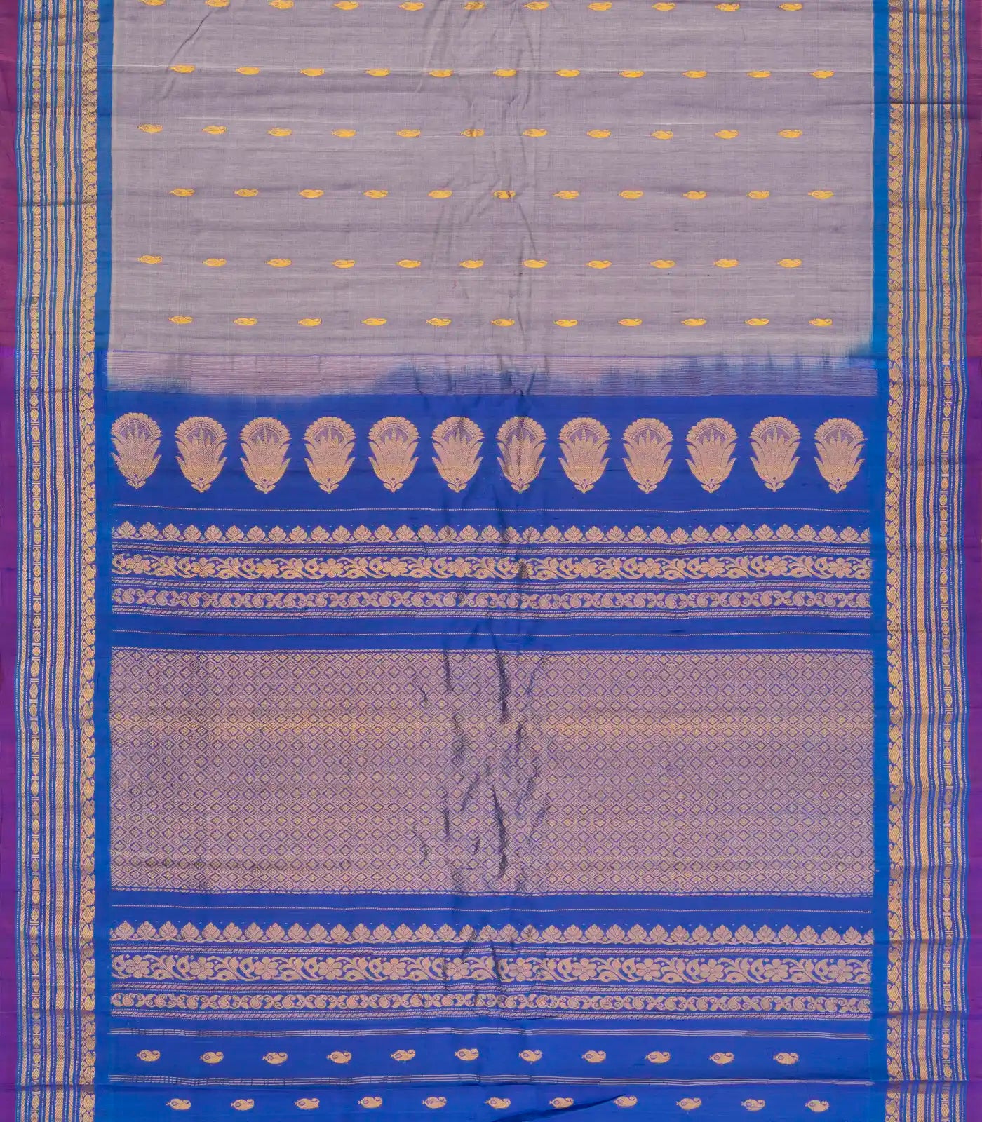 Grey Handloom Gadwal Silk Cotton Saree With Buttas & Contrast Border-GA0222