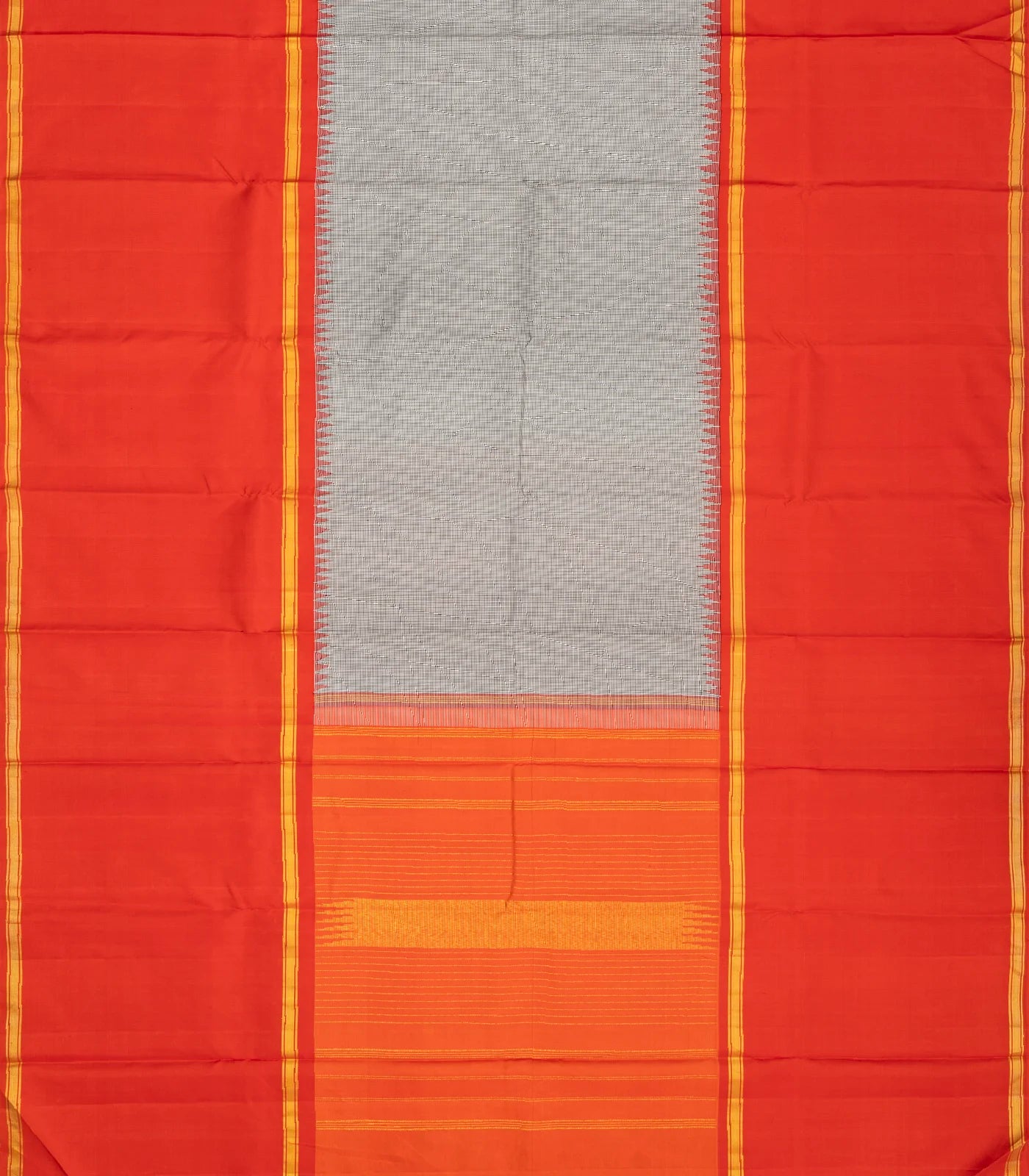Grey Handloom Kanchipuram Korvai Silk Saree With Checks