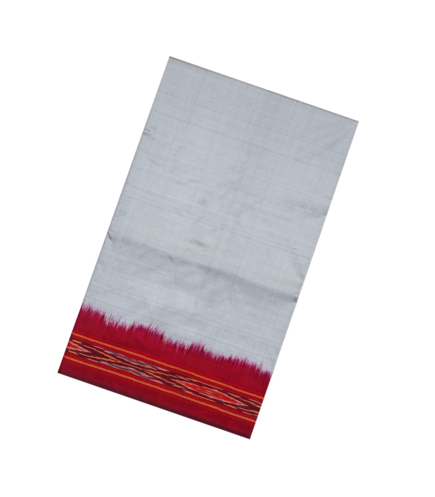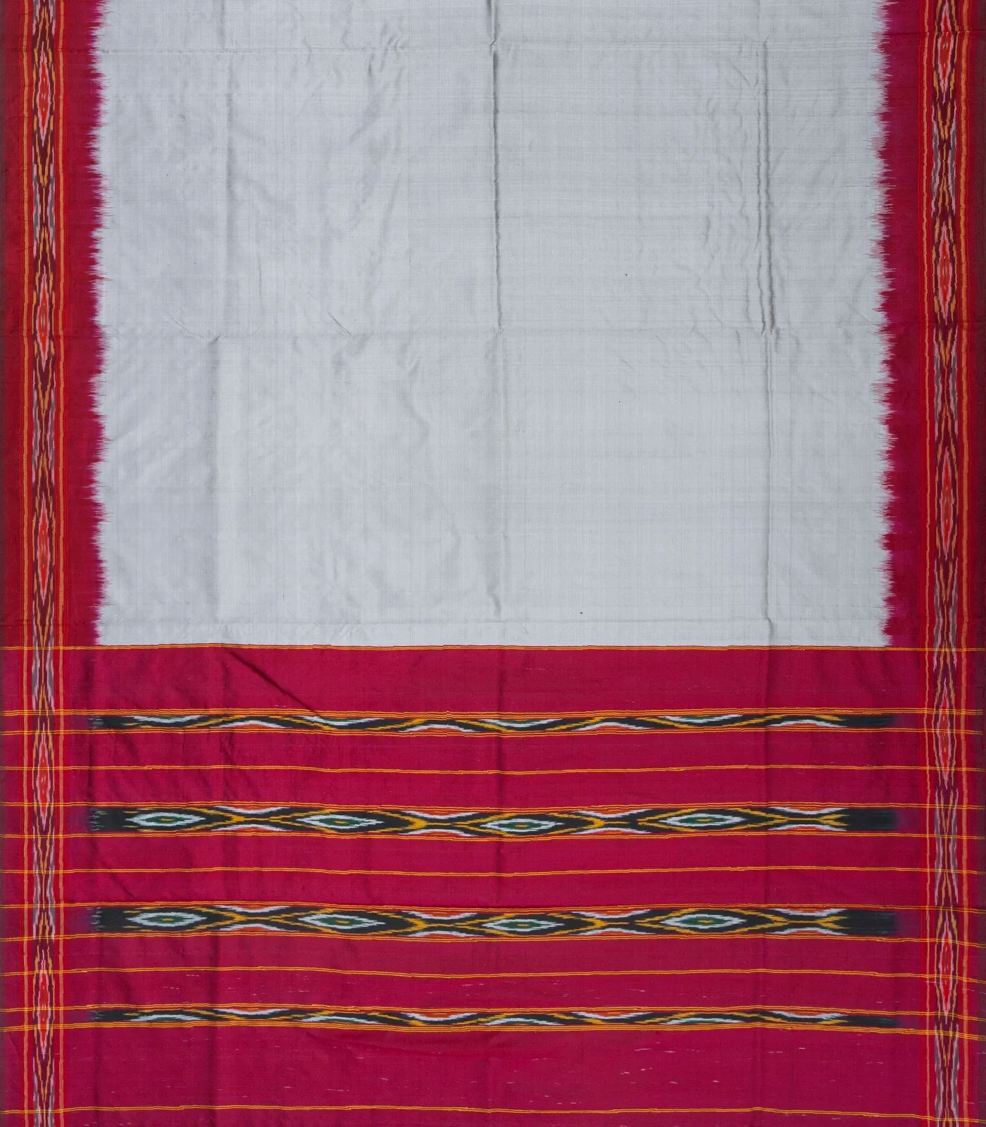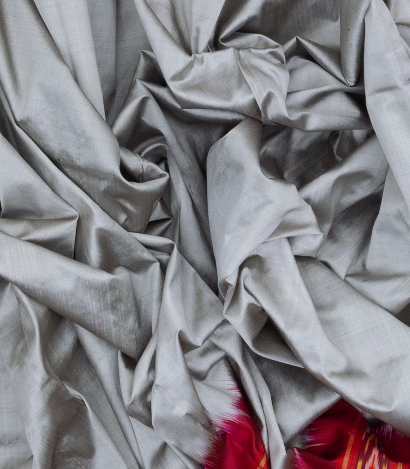 Grey Handloom Pochampally Ikat Silk Saree With Tie & Dye Border-IK0410