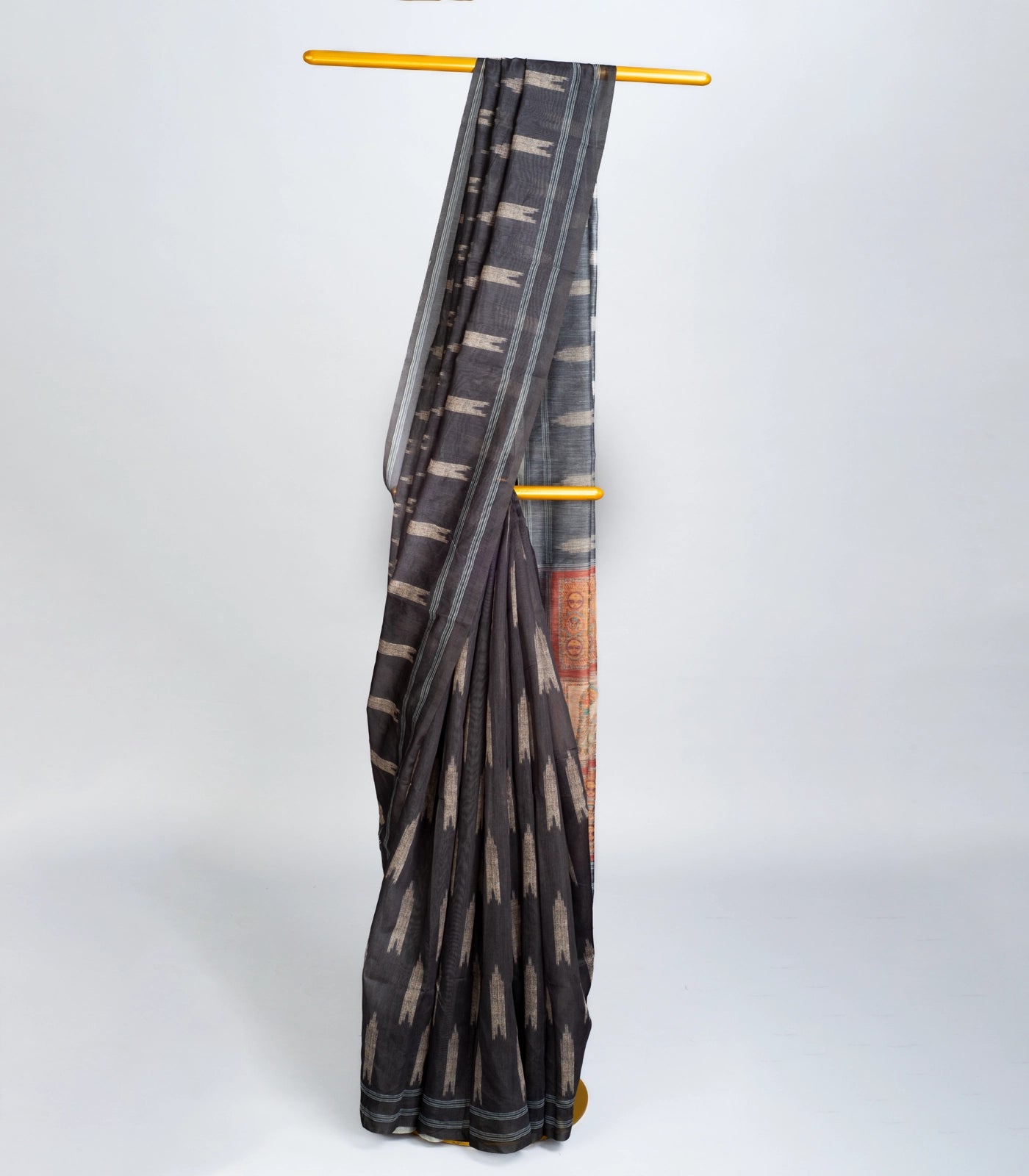 Grey Woven Art Linen Saree With Printed Pallu-BL3720