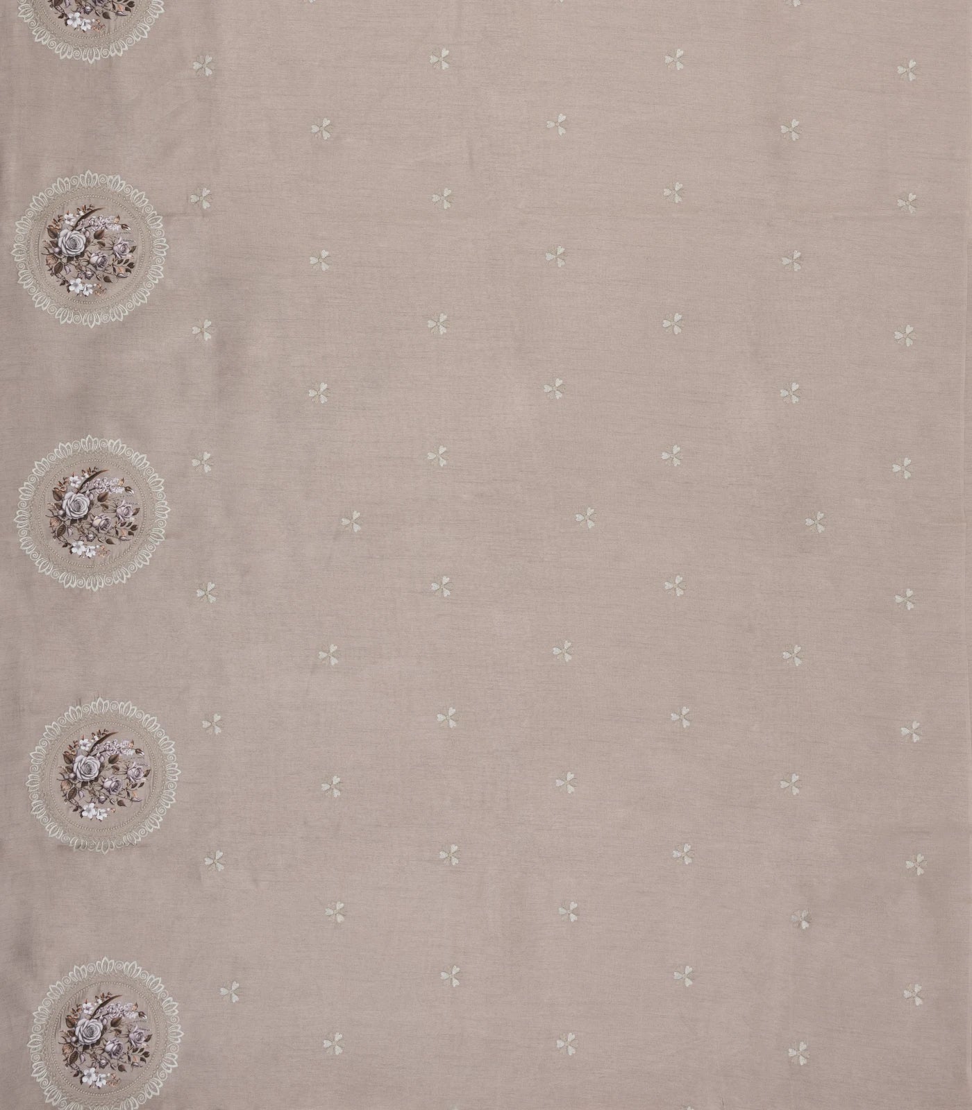 Grey Woven Art Tussar Saree With Printed & Embroidered Floral Motifs-BL4723