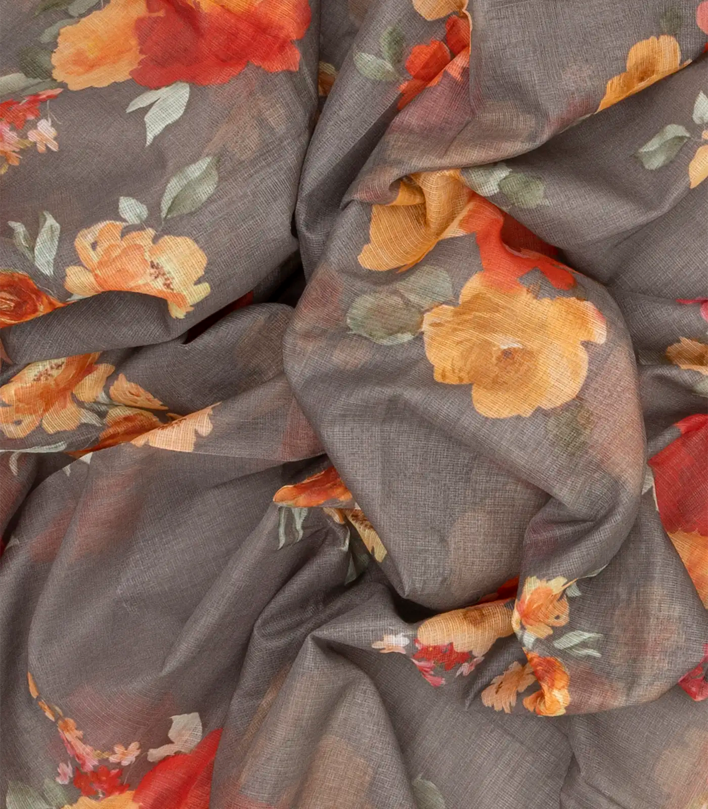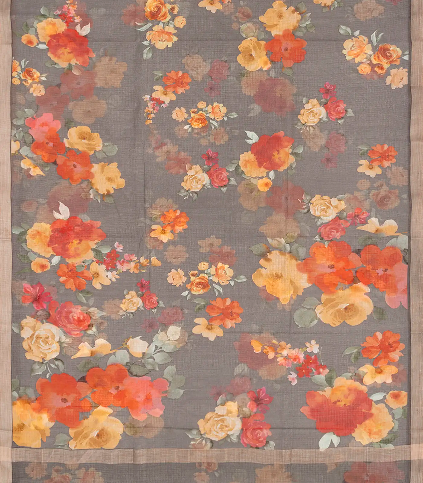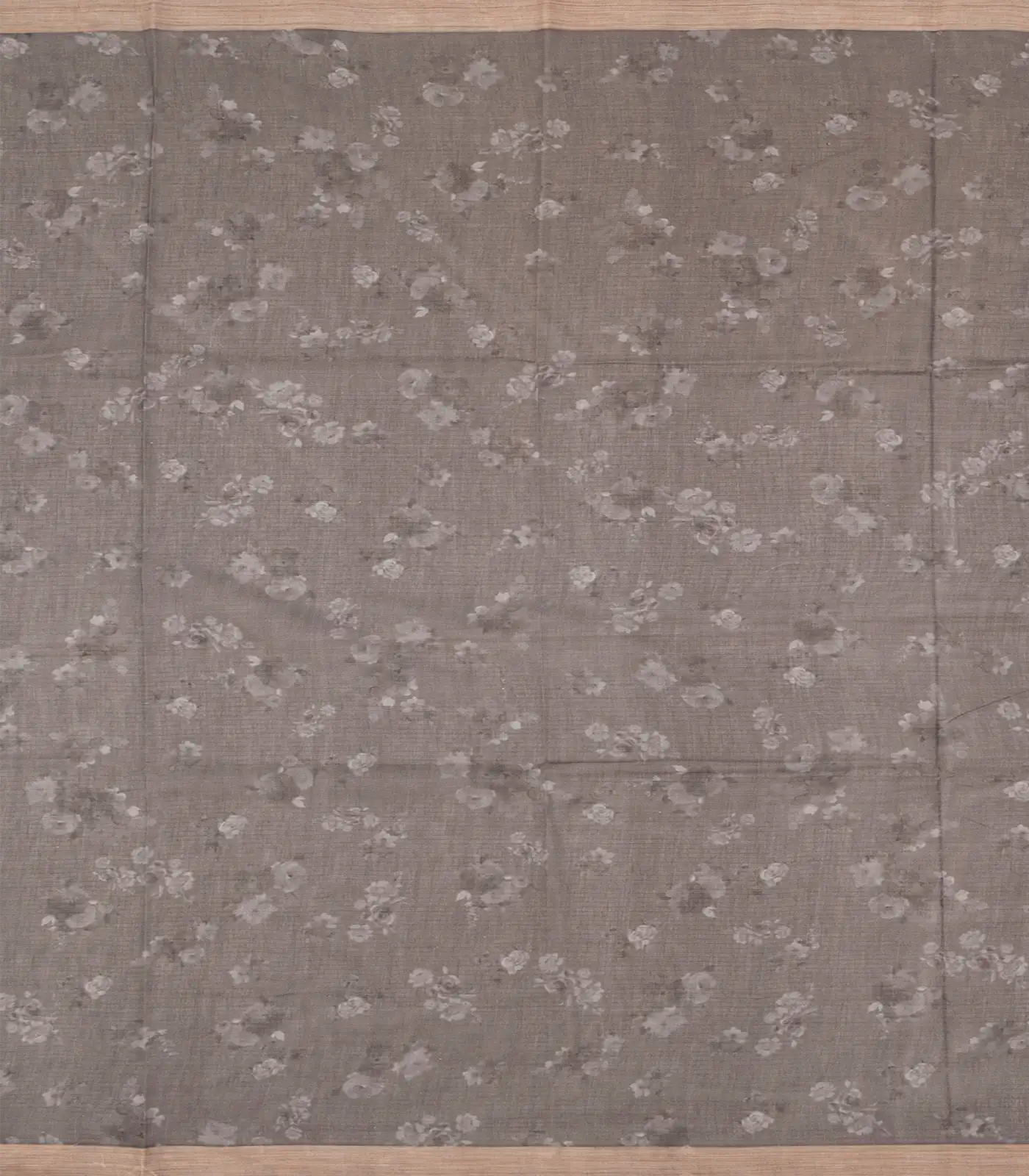 This kota silk saree is filled with printed floral motif in grey body along with beige border