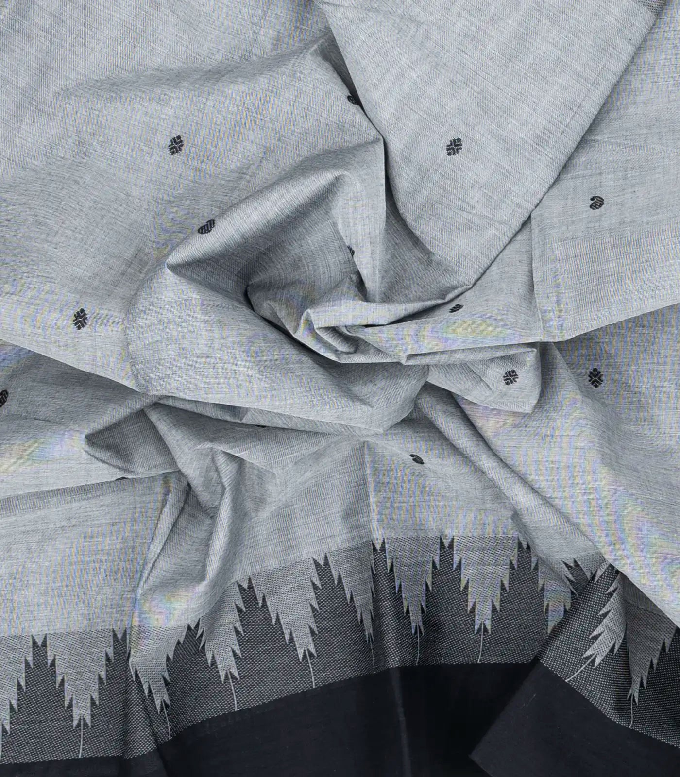 Grey Woven Chettinad Cotton Saree With Buttas & Contrast Border-CN1801