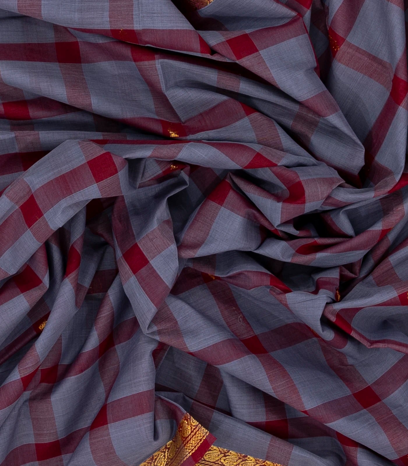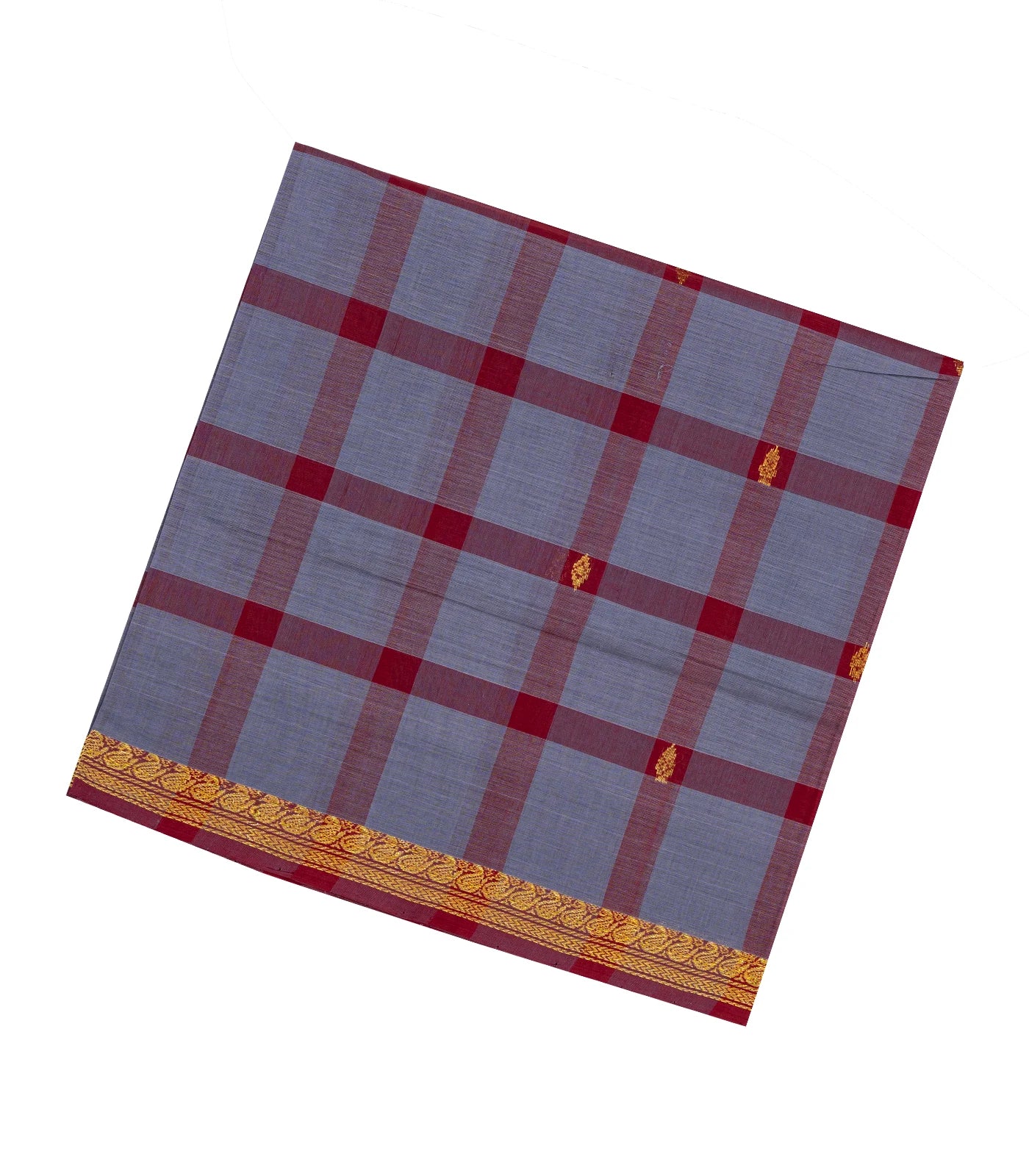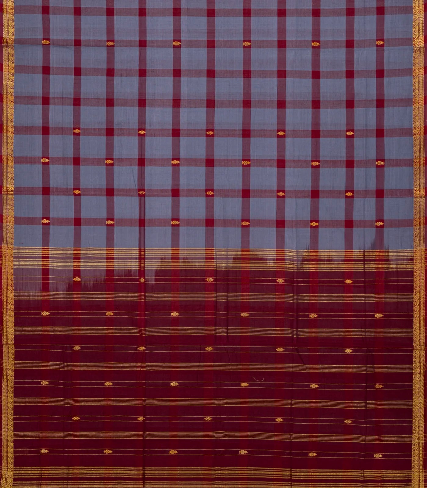 Grey Woven Kadapa Cotton Saree With Checks & Buttas-KN0683