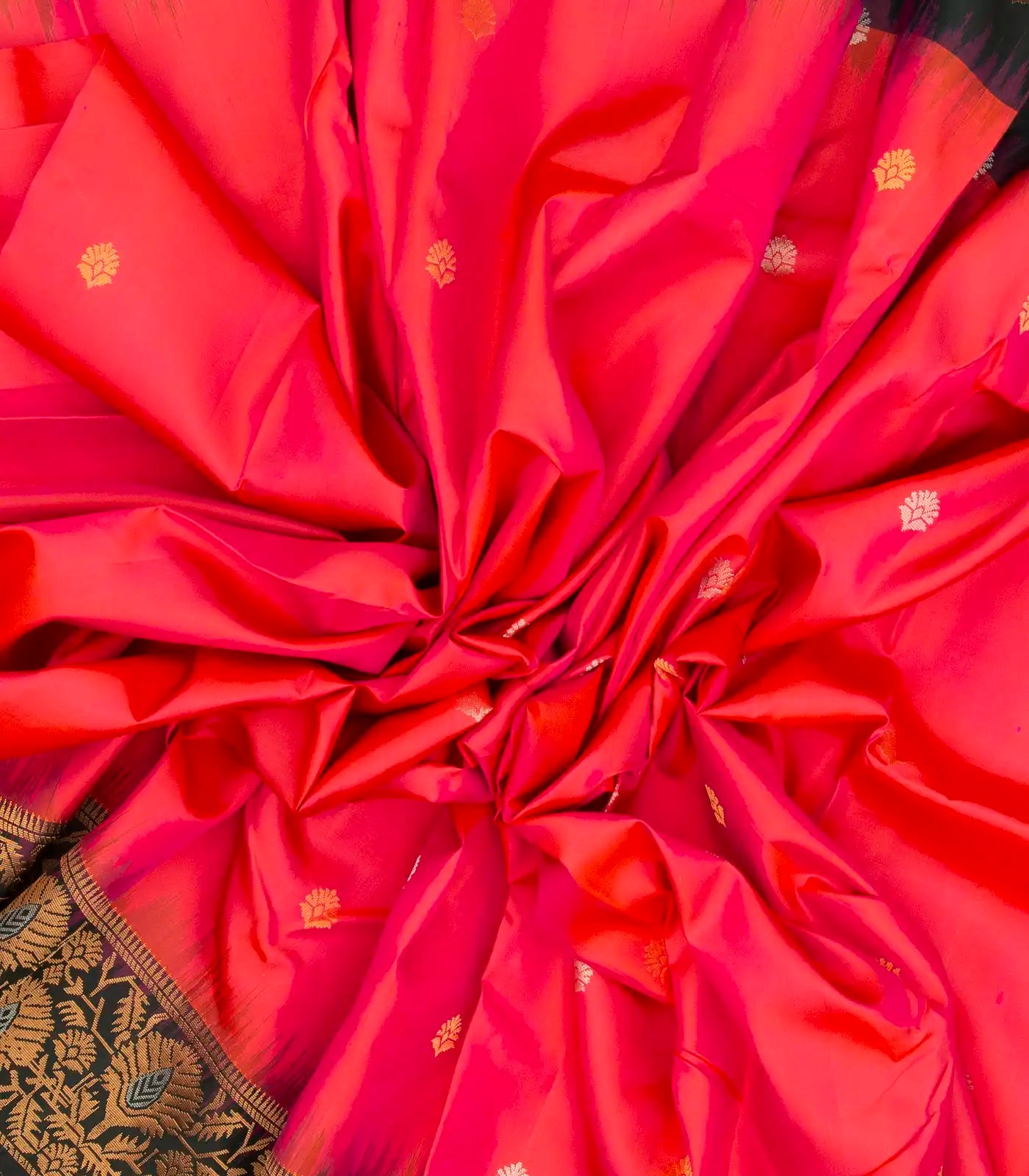 Hot Peach Handloom Soft Silk Saree With Buttas & Contrast Border-SO4030