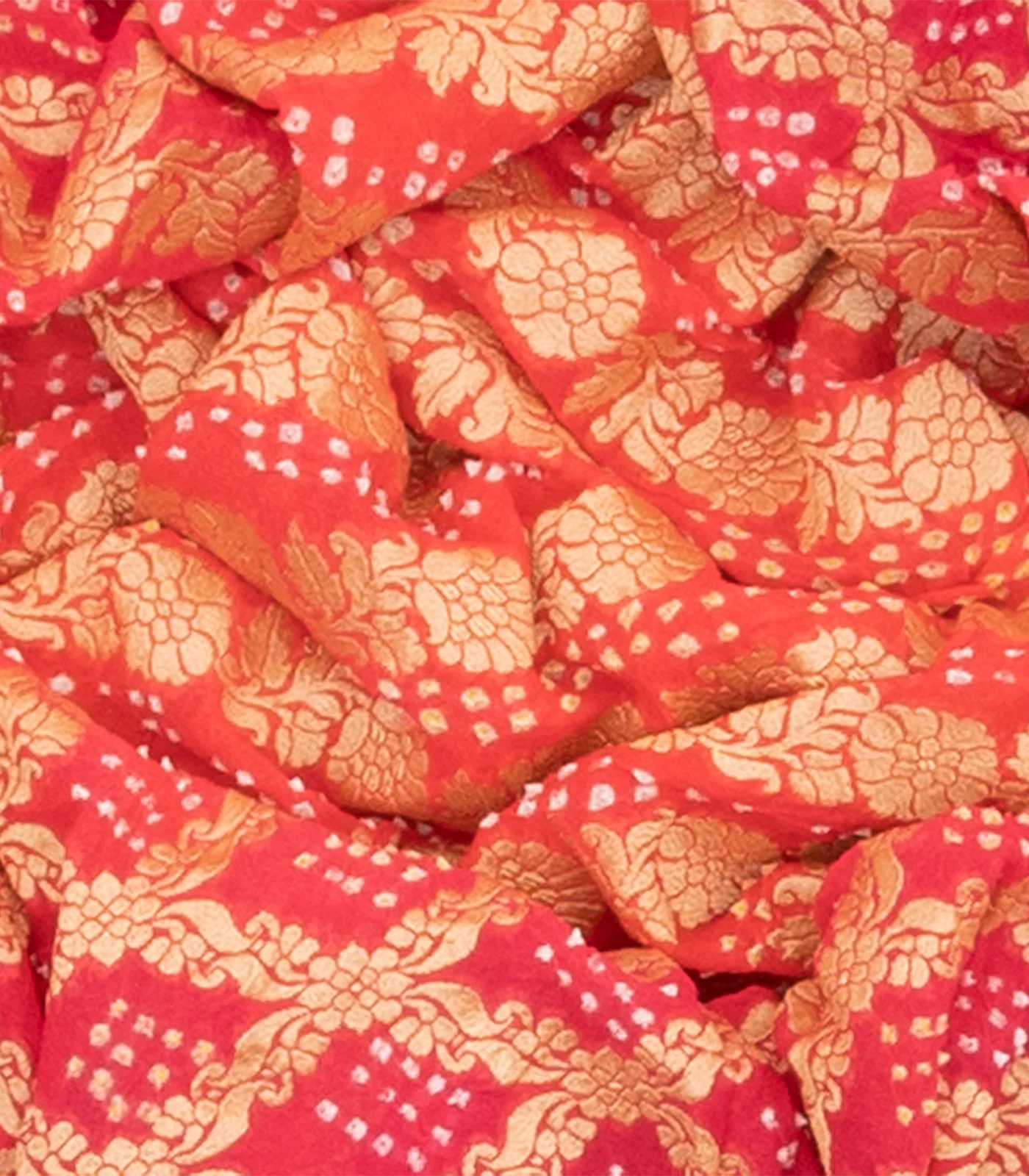 Hot Pink Handloom Banarasi Bandhani Khaddi Georgette Saree With Floral Chevron Motifs-Hot Pink