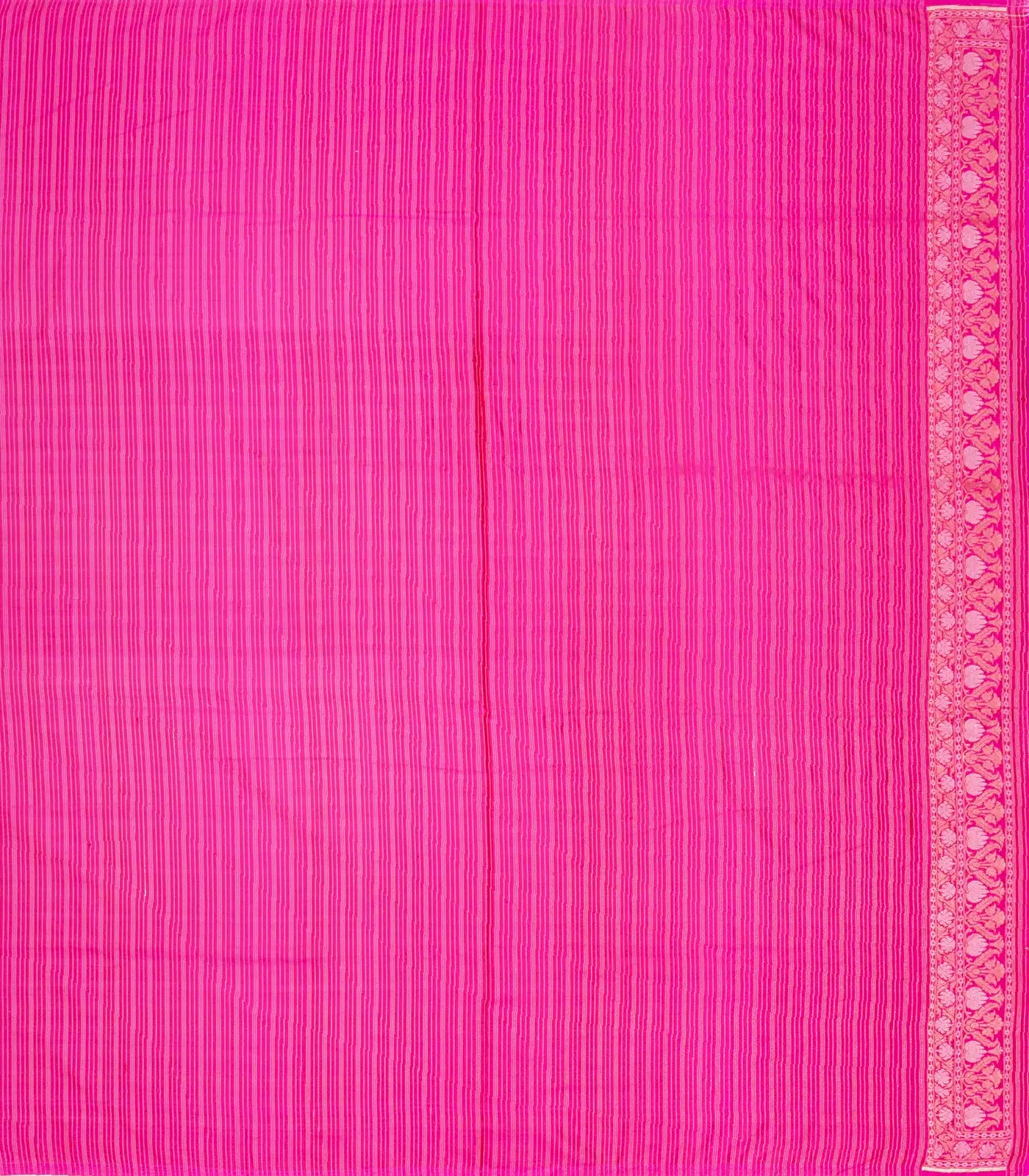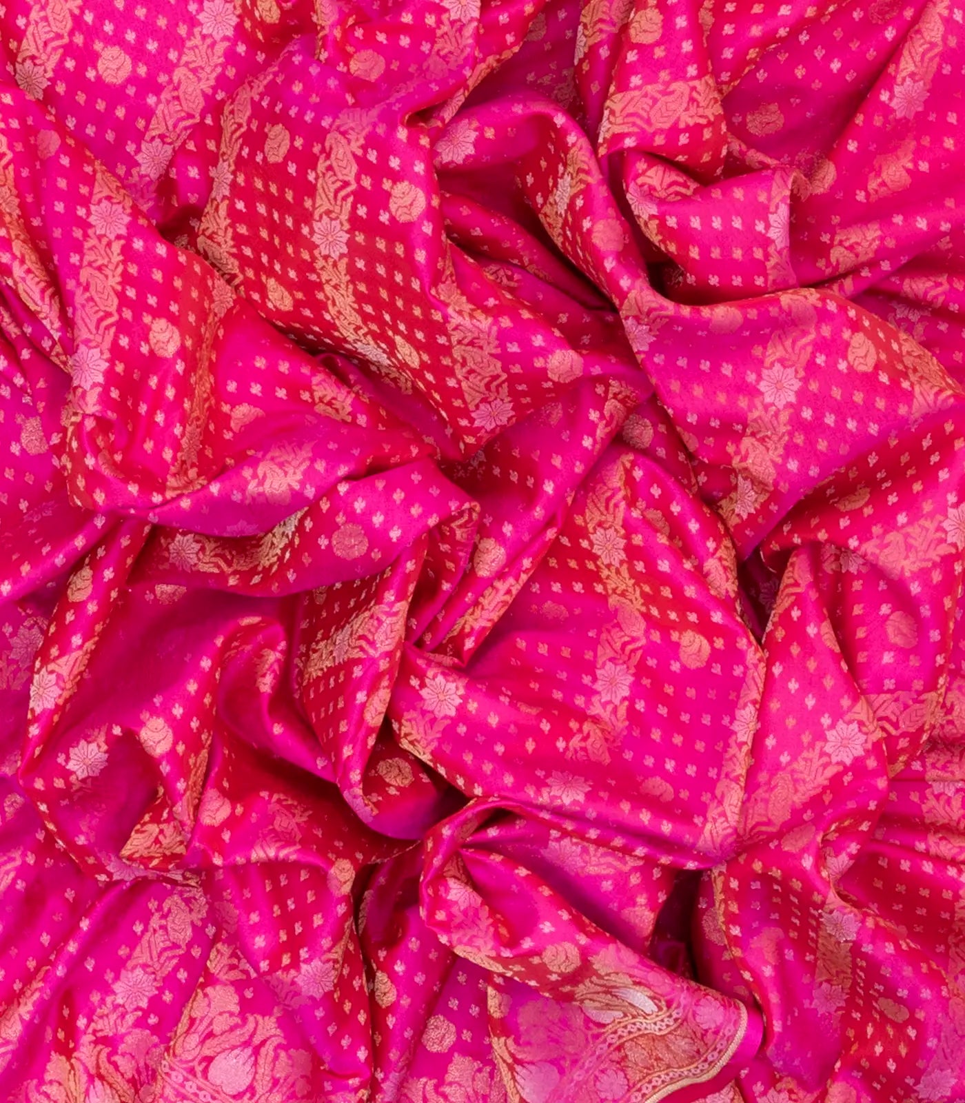 Hot Pink Handloom Banarasi Silk Saree With Floral Motifs-BE1290