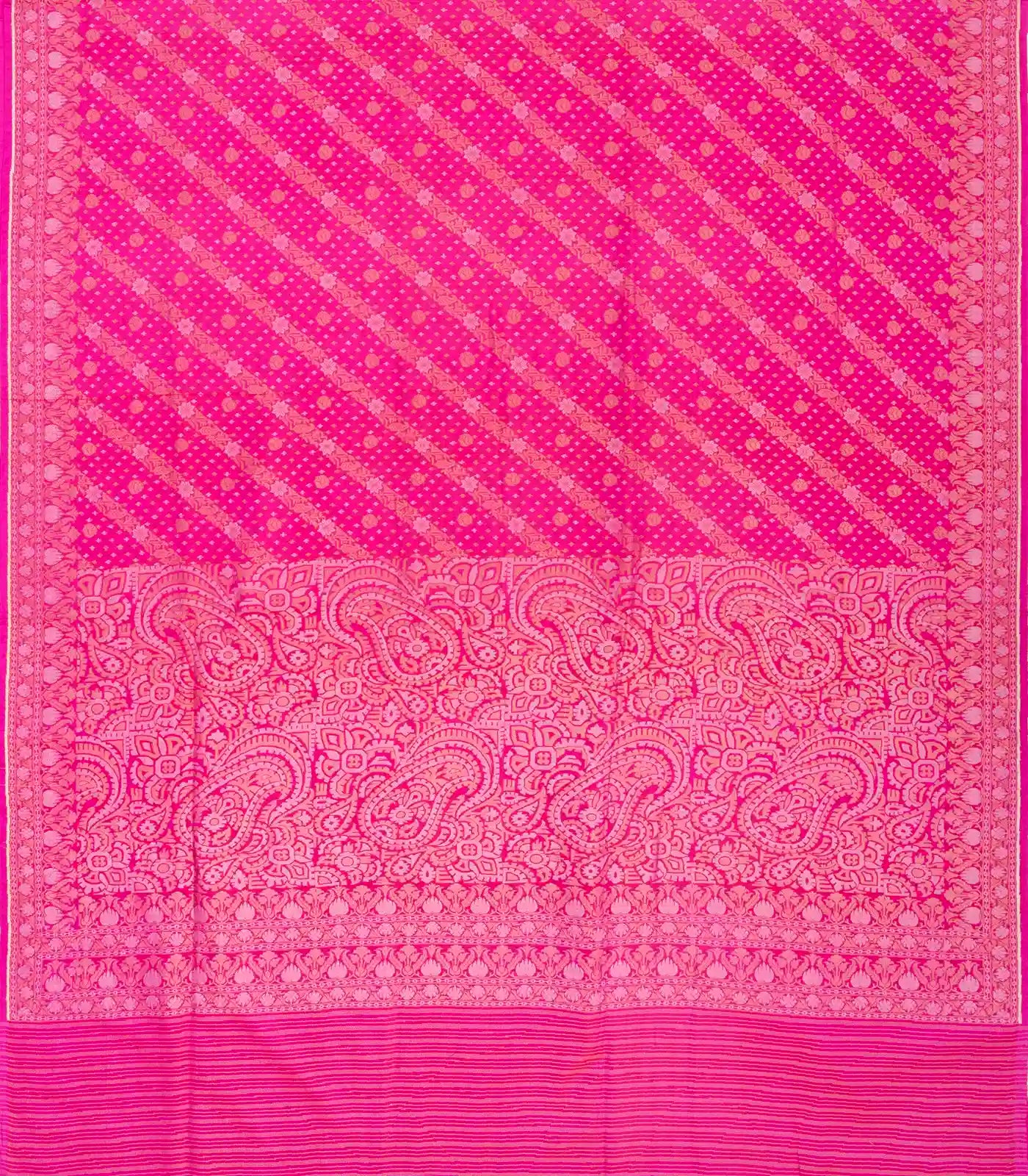 This handwoven banarasi silk saree is filled with floral motifs in hot pink body along with border and pallu