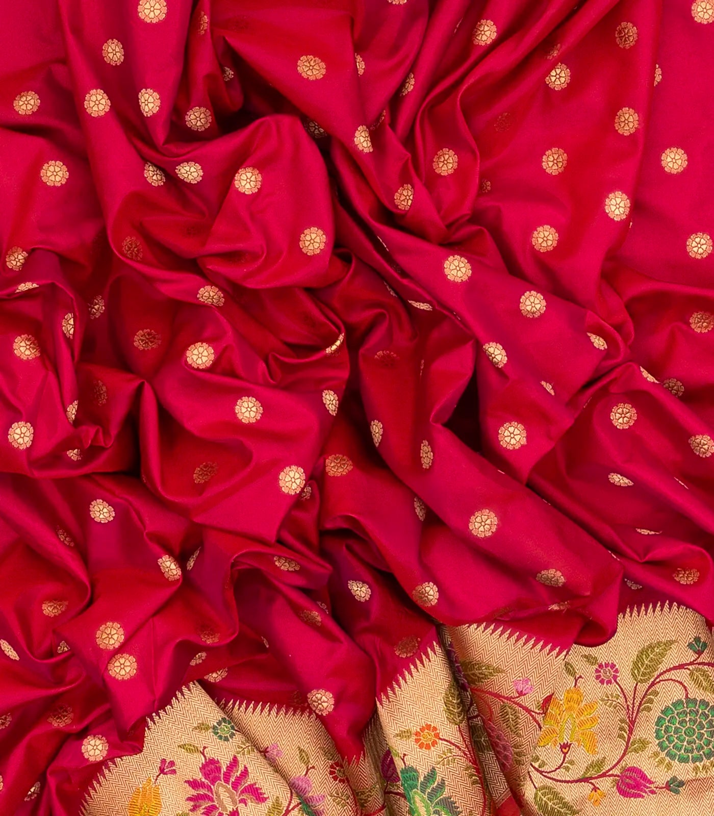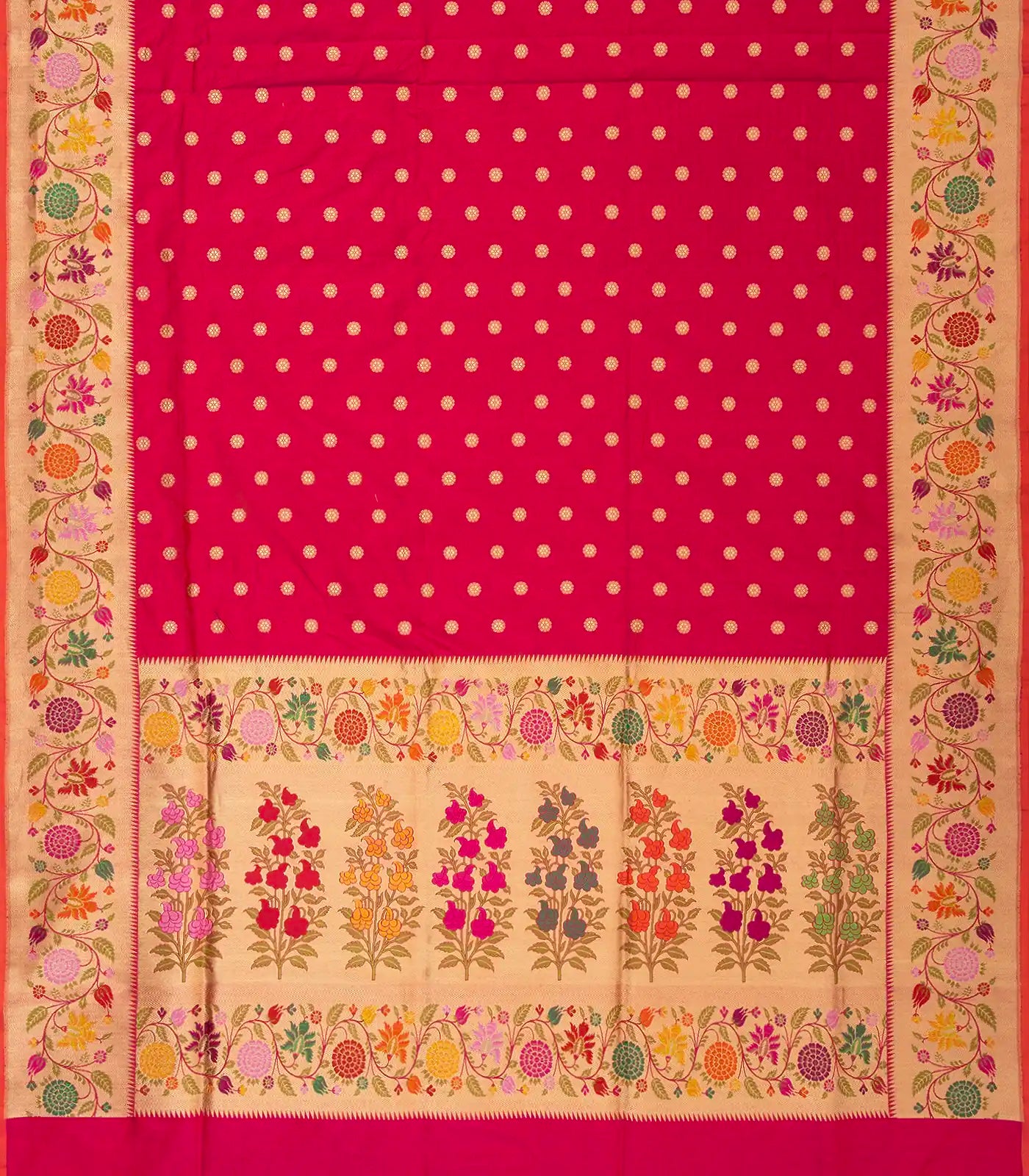 This handwoven banarasi ektara weaving silk saree with kamalam zari buttas in hot pink body along with meena floral motifs in border and pallu