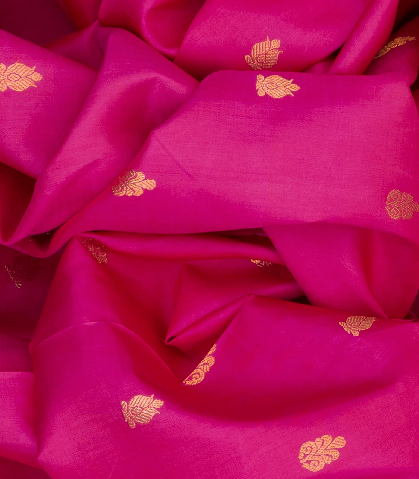 Hot Pink Handloom Kanchipuram Silk Saree With Floral Buttas-Hot Pink