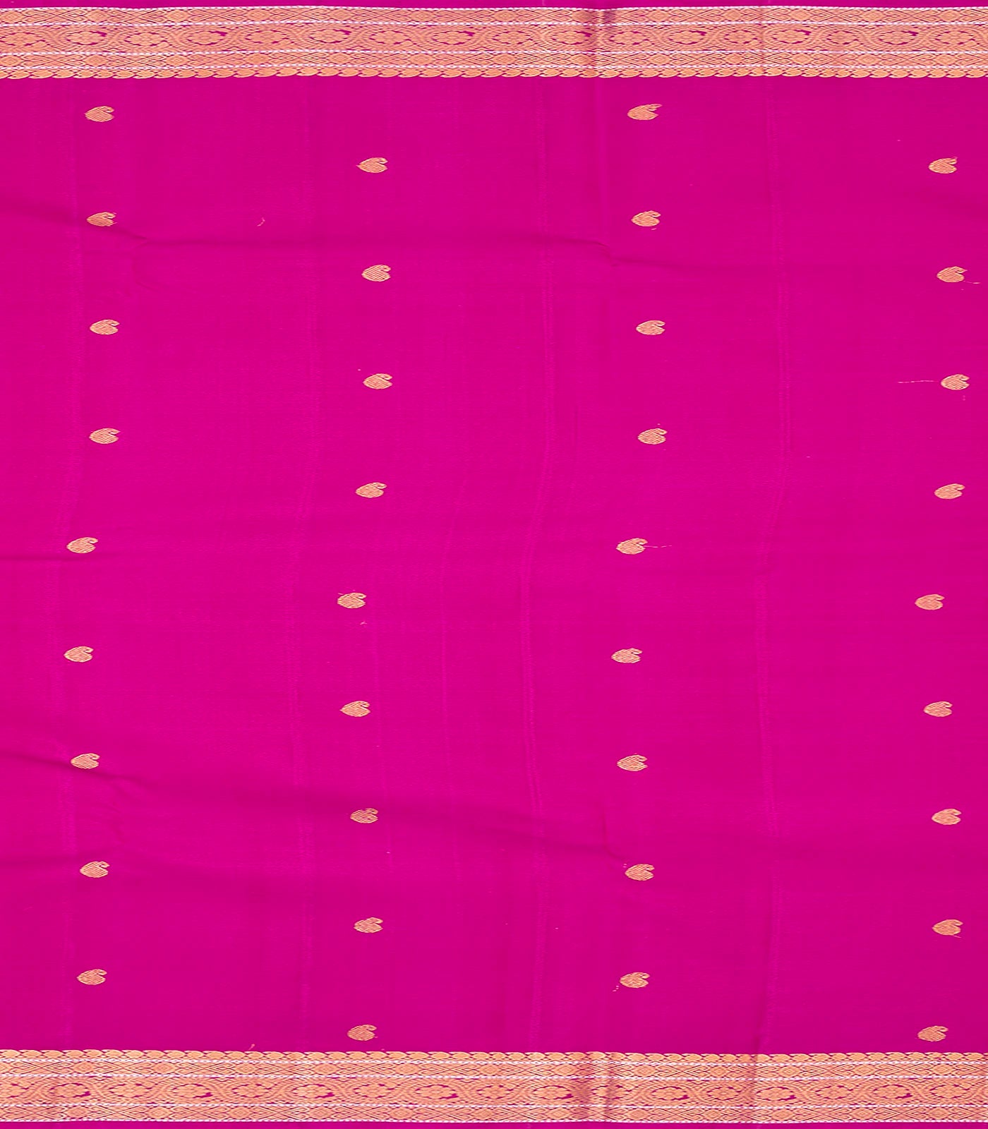 Hot Pink Handloom Kanchipuram Silk Saree With Zari Stripes-Hot Pink