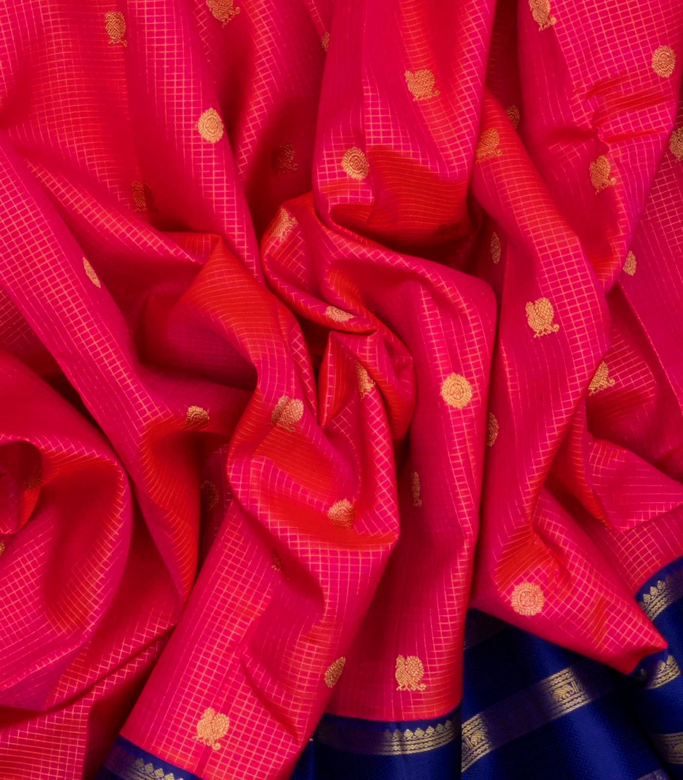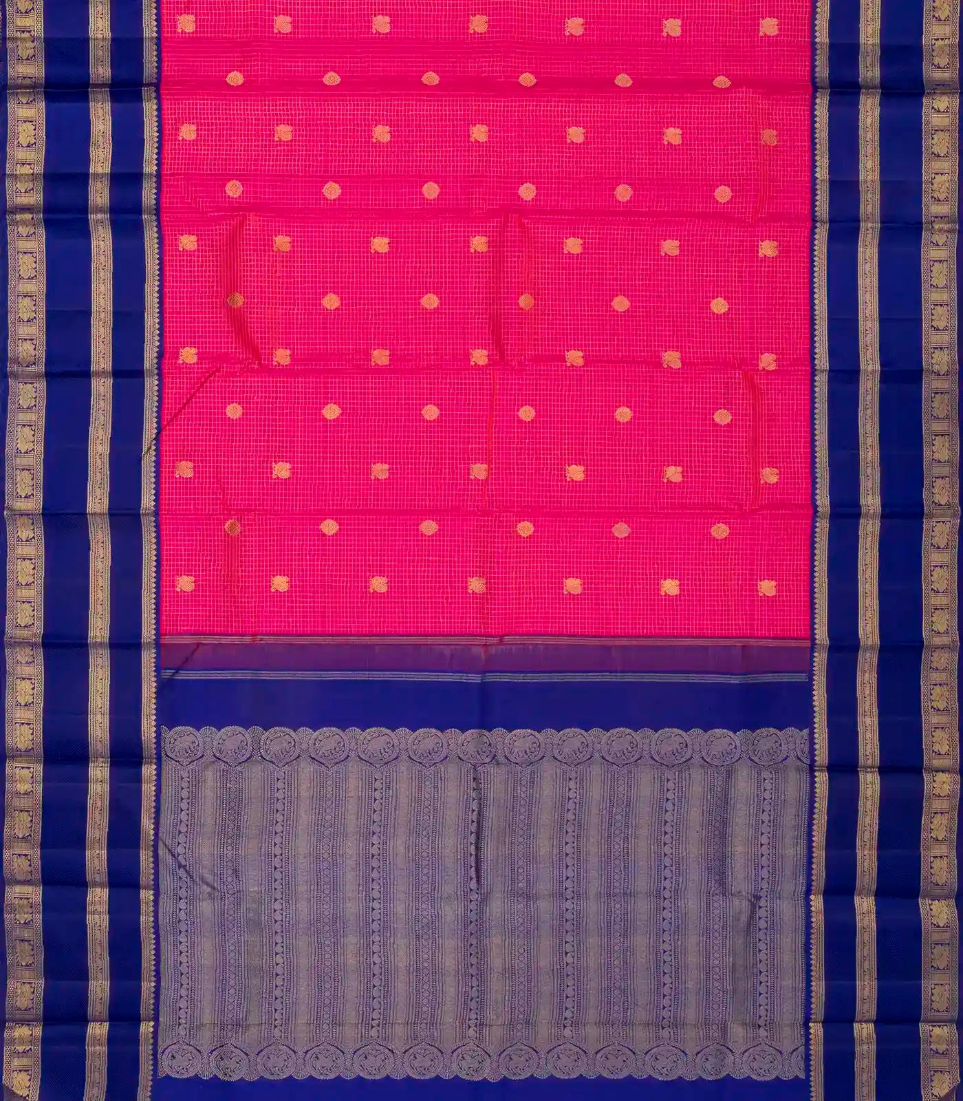 Hot Pink Handloom Korvai Kanchipuram Silk Saree With Checks & Buttas