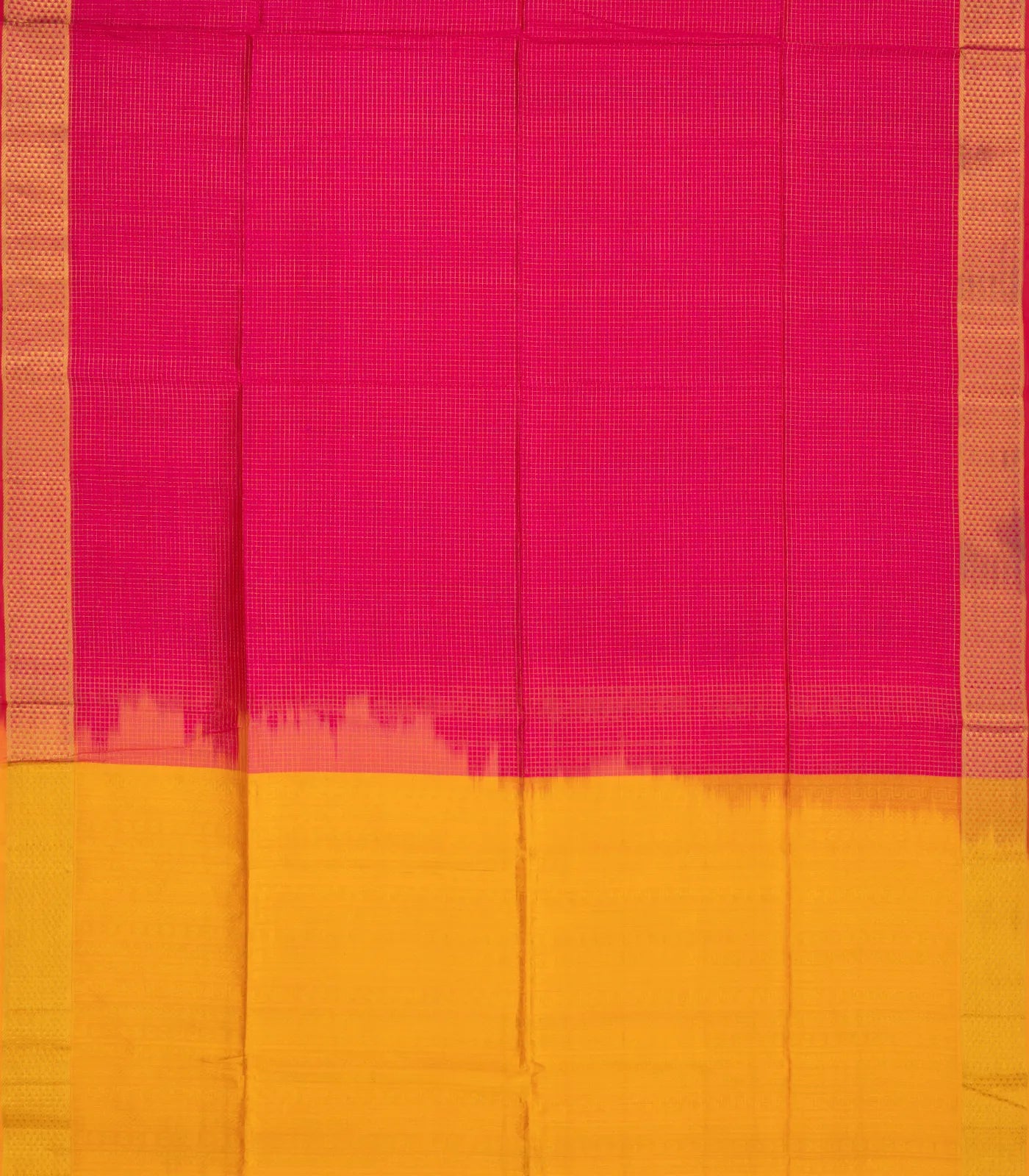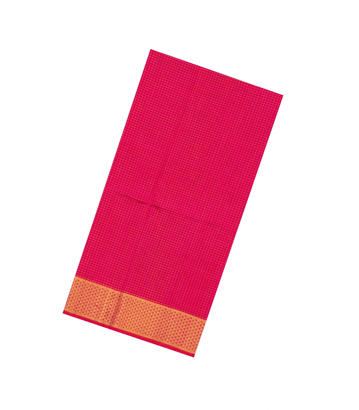 Hot Pink Handloom Silk Cotton Saree With Checks & Contrast Pallu-SC3819