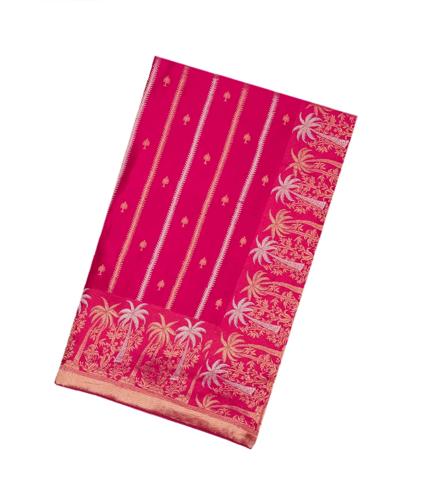 Hot Pink Woven Satin Crepe Saree With Zari Stripes-EN1629
