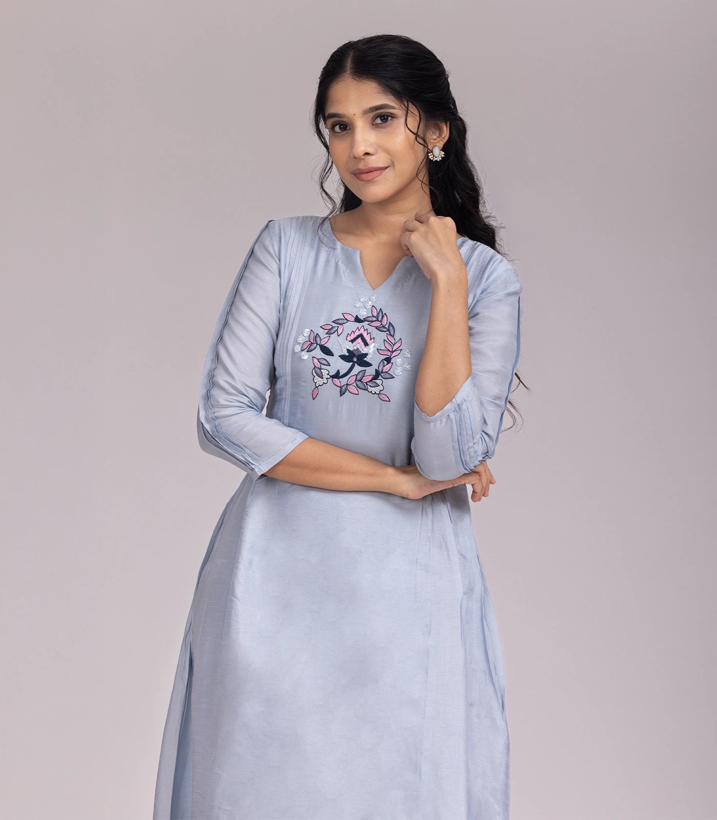 Ice Blue Embroidered Co-Ord Set-CO5007