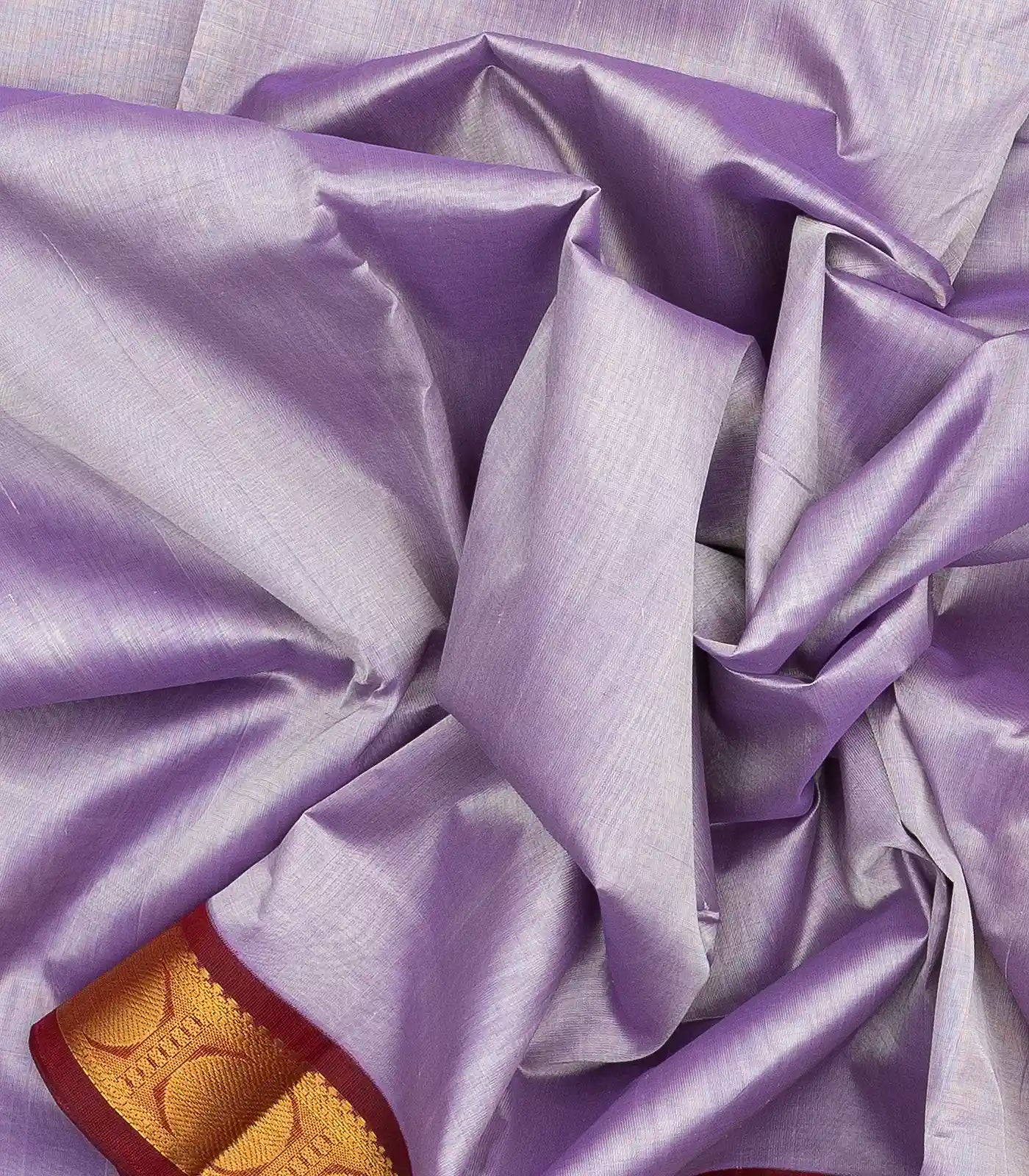 Lavender Handloom 9 Yards Korvai Silk Cotton Saree With Contrast Border-SC3770