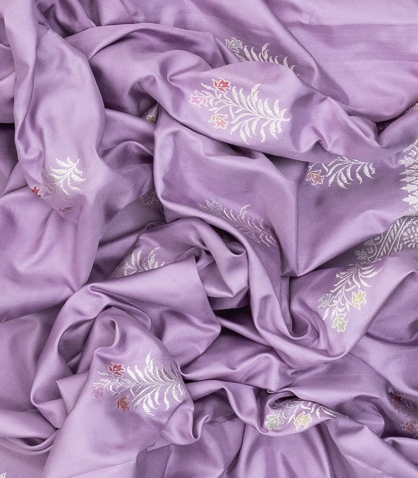 This handwoven banarasi Ektara Weaving silk saree is filled with floral buttas in lavender body along with border and pallu