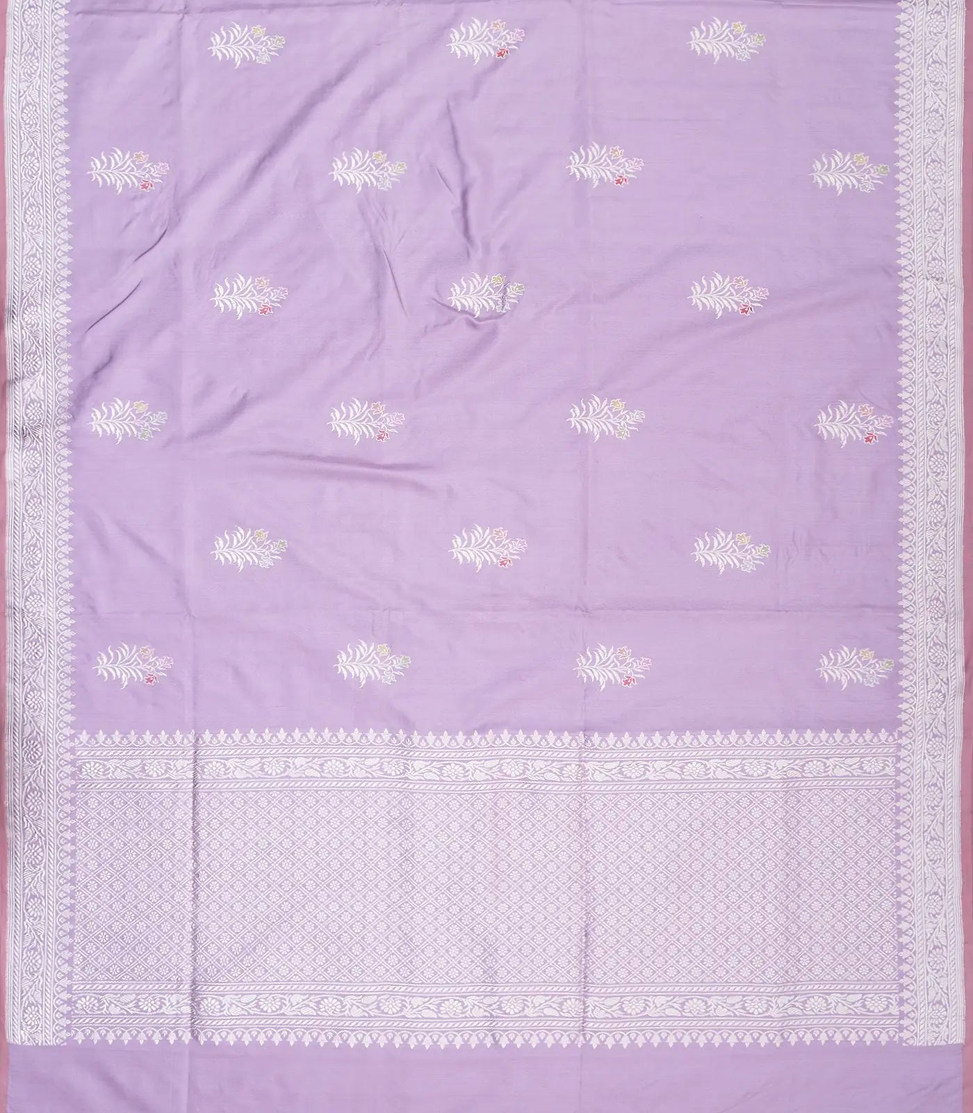 Lavender Handloom Banarasi Ektara Weaving Silk Saree With Floral Buttas-BE1363