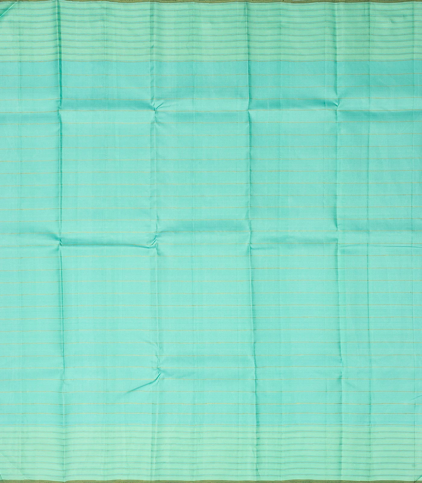 This handwoven kanchipuram korvai silk saree is filled with stripes in lavender body along with contrast turquoise border and pallu