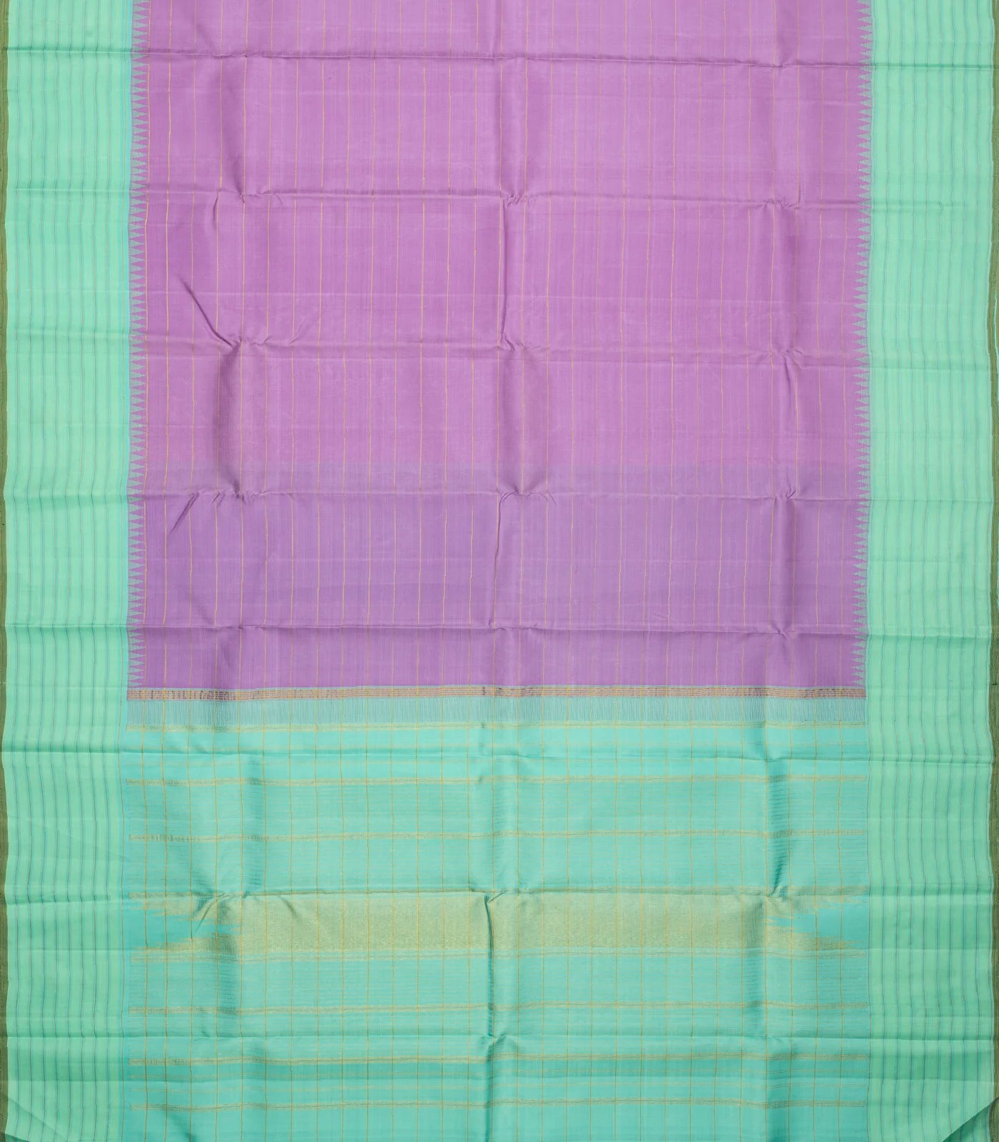 Lavender Handloom Kanchipuram Korvai Silk Saree With Stripes
