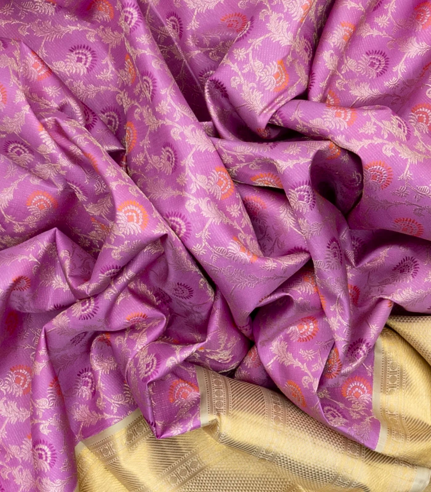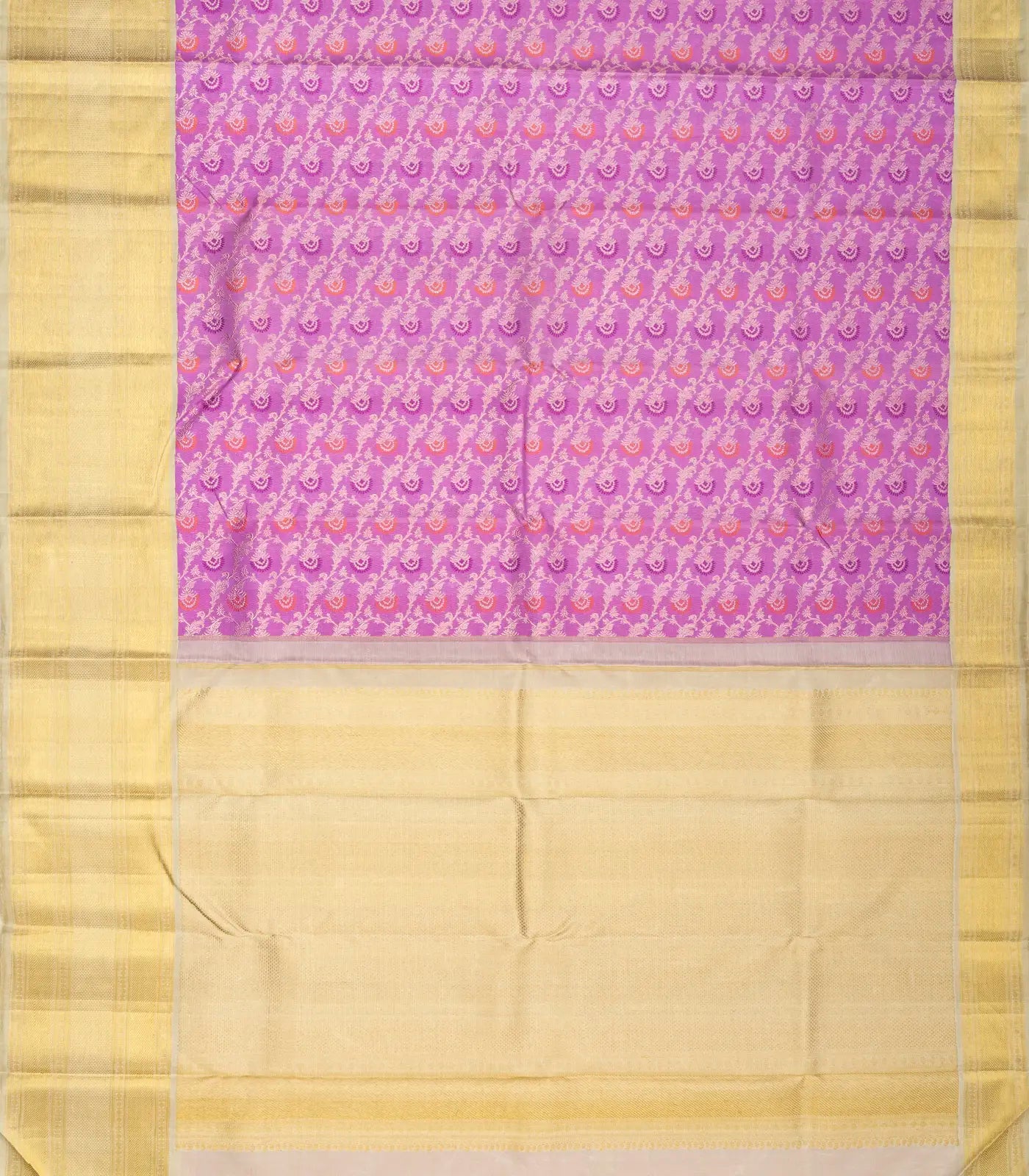 Lavender Handloom Korvai Kanchipuram Silk Saree With Meena Floral Motifs