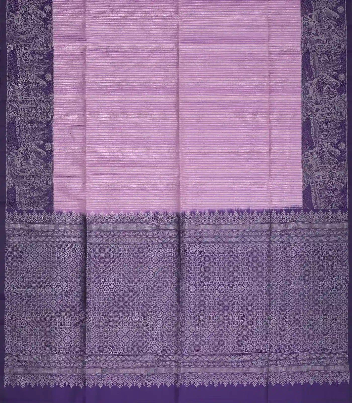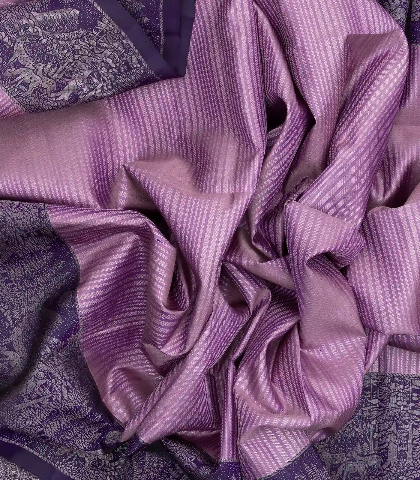 This handwoven soft silk saree is filled with stripes in lavender body along with contrast border and pallu