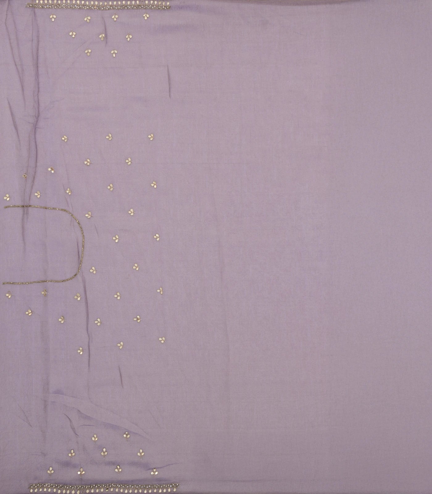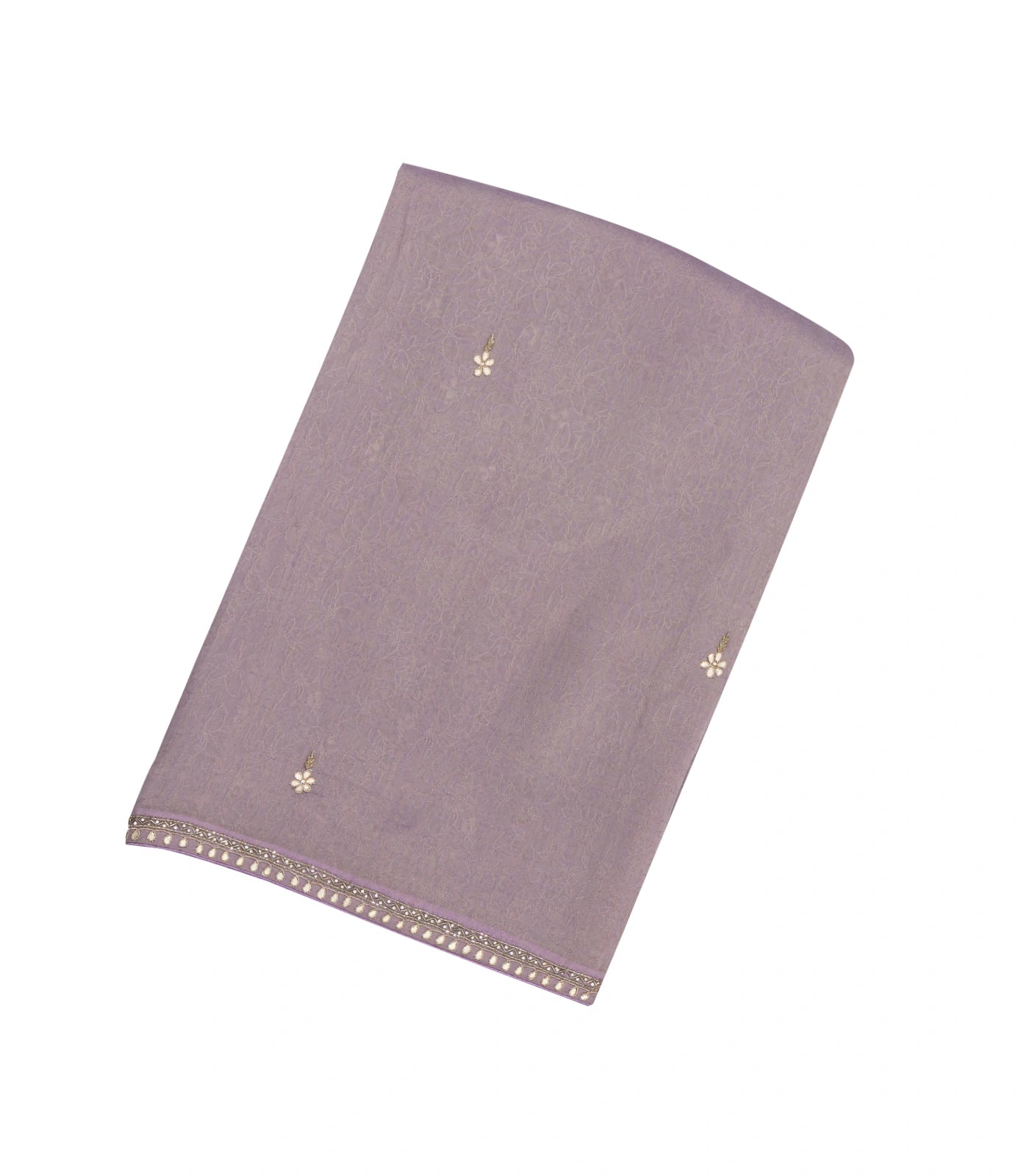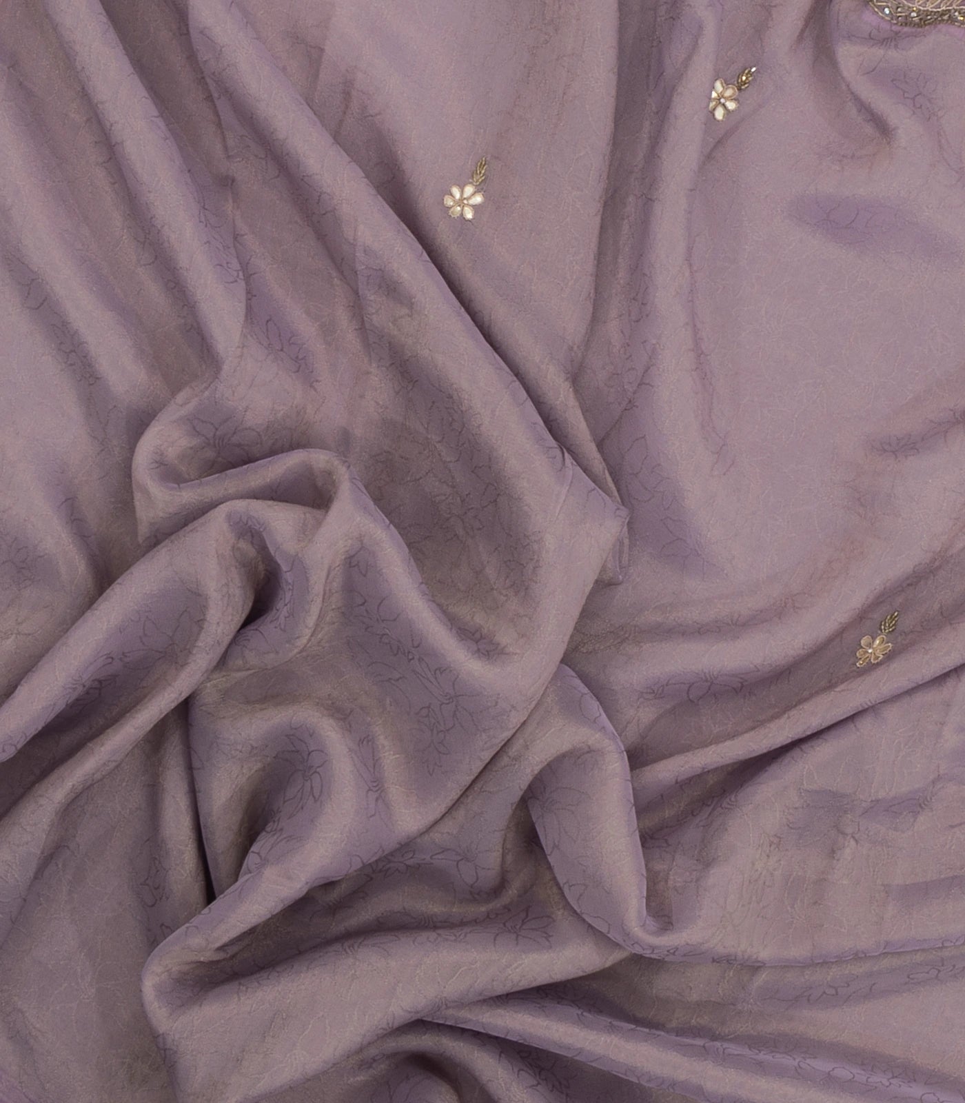This woven blended georgette saree is filled with embroidered floral motifs in lavender body along with selvage and pallu