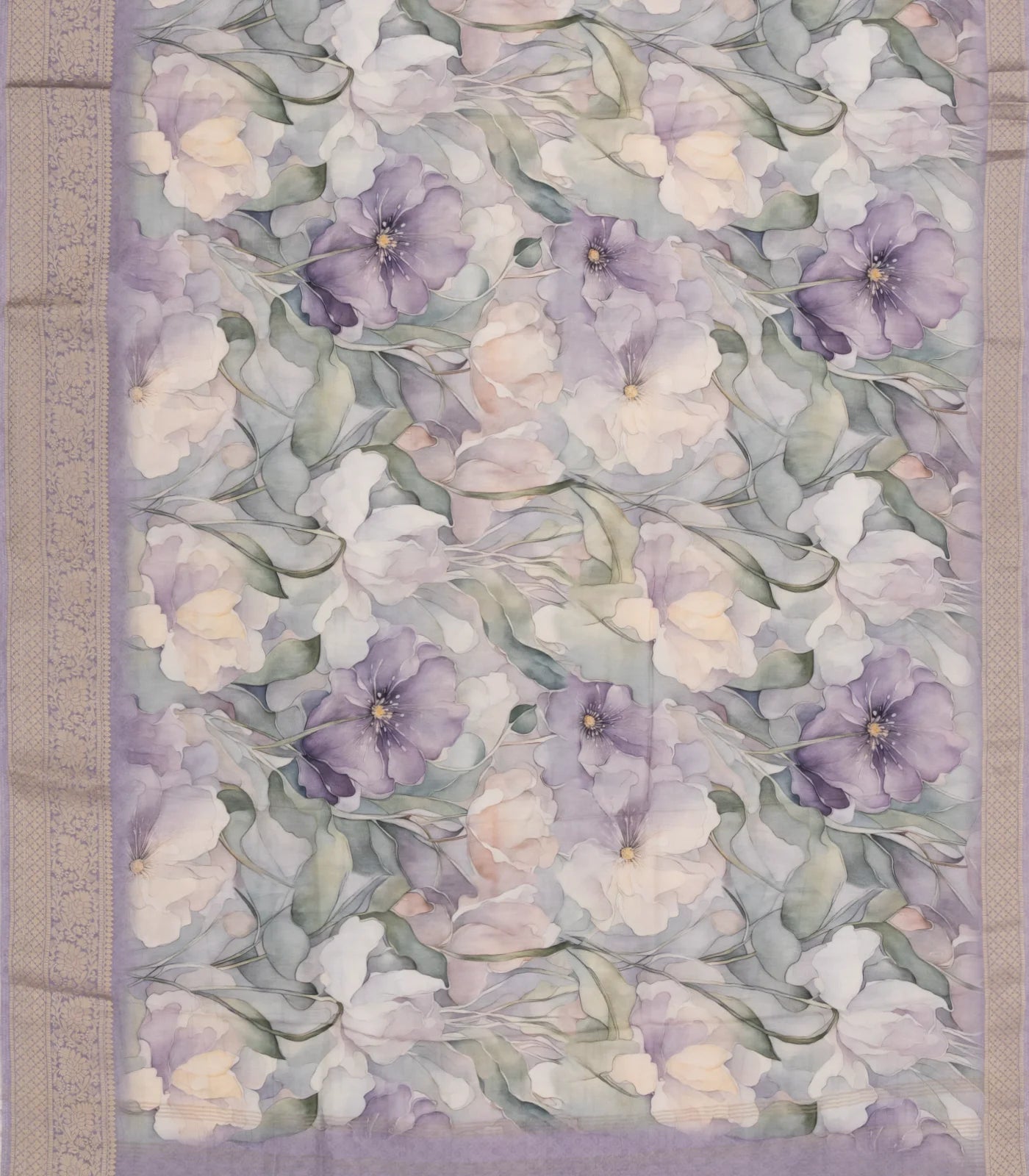Lavender Woven Synthetic Viscose Saree With Printed Floral Motifs-BL4926