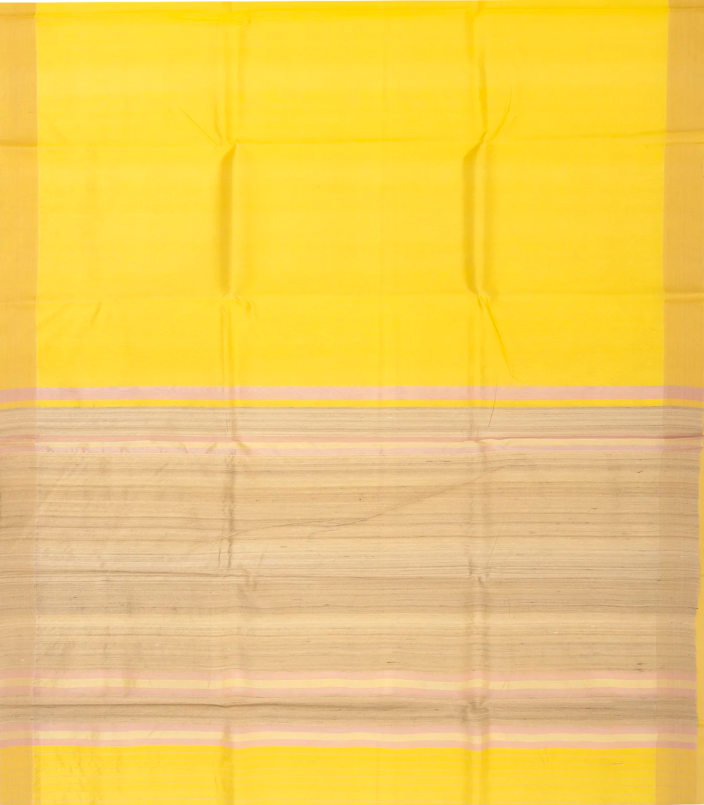This handwoven banarasi organza saree is filled with plain lemon yellow body along with border and pallu