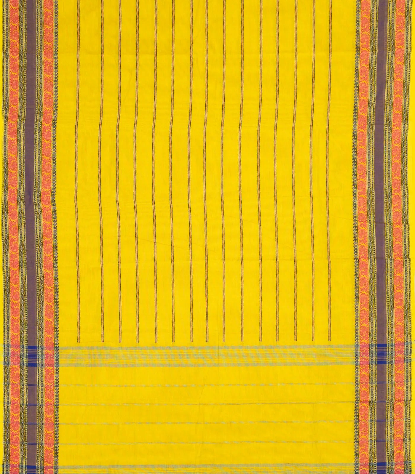 Lemon Yellow Woven Chettinad Cotton Saree With Stripes-CN1794