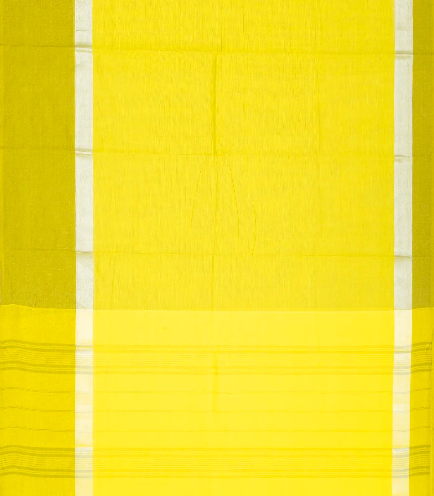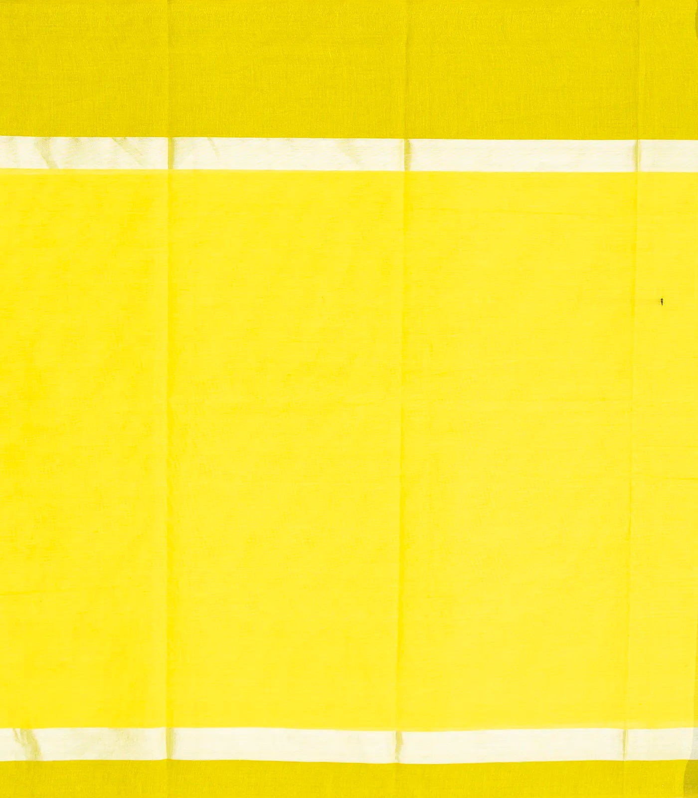 This woven chirala cotton saree is filled with plain lemon yellow body along with contrast border and pallu