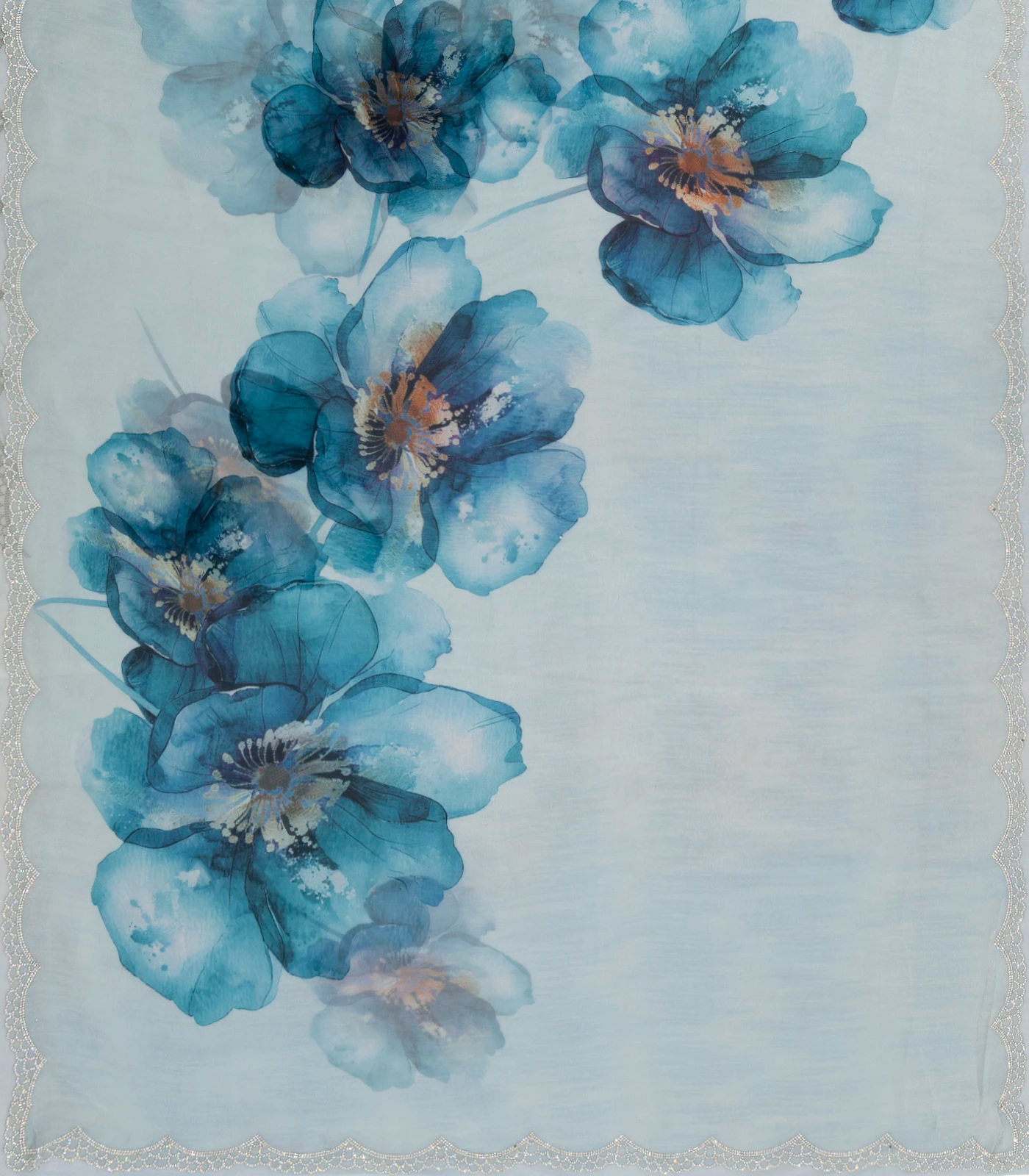 Light Blue Woven Blended Chiffon Saree With Printed Floral Motifs & Embroidered Selvage-EN1910