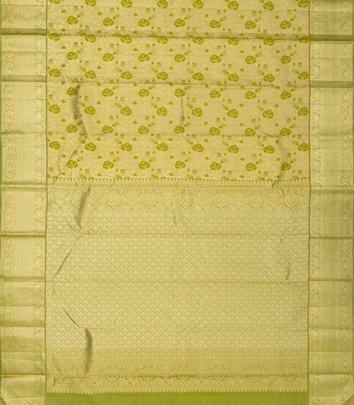 Light Green Blended Silk Saree With Floral Jaal Motifs