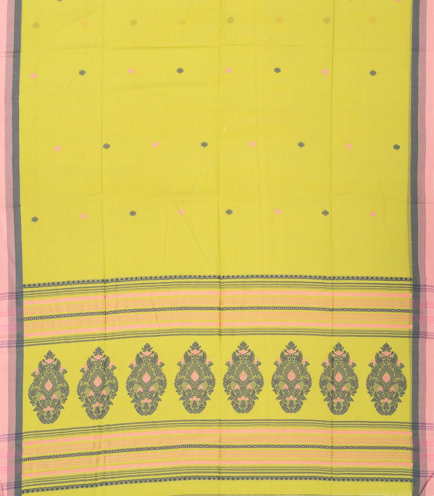 Light Green Handloom Bengal Cotton Saree With Diamond Buttas-BG1286