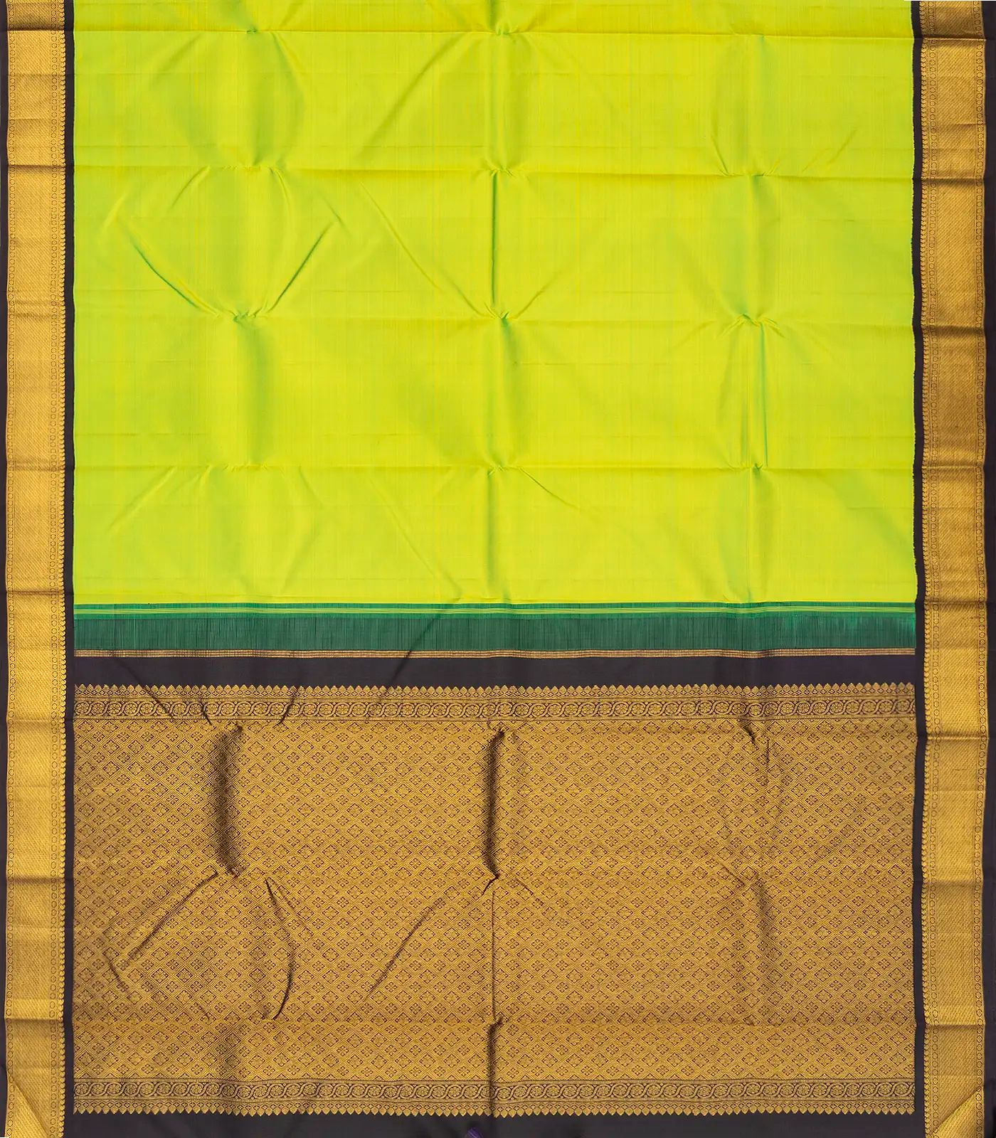 Light Green Handloom Korvai Kanchipuram Silk Saree With Black Border-KA13250
