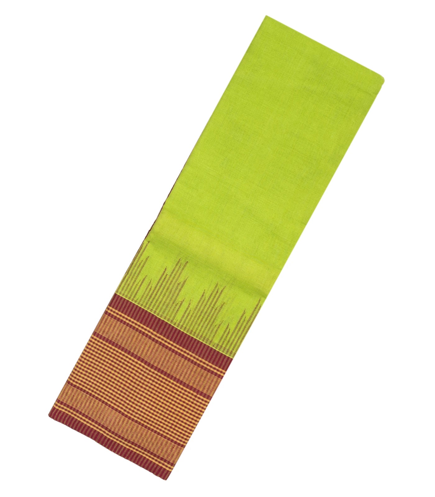 This handwoven rasipuram cotton saree is filled with plain light green body along with contrast temple border