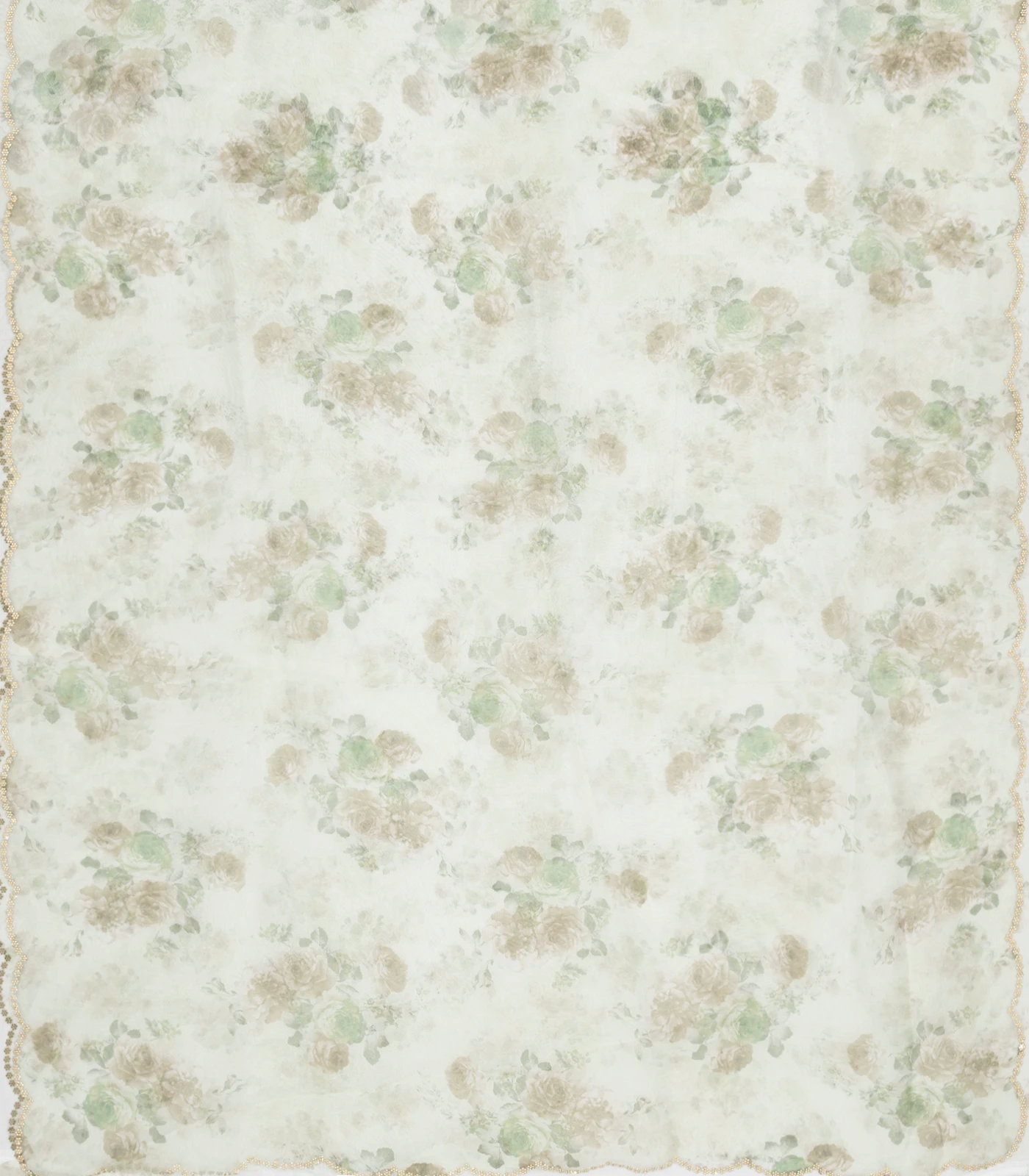 Light Green Woven Blended Chiffon Saree With Printed Floral Motifs & Embroidered Selvage-EN1914