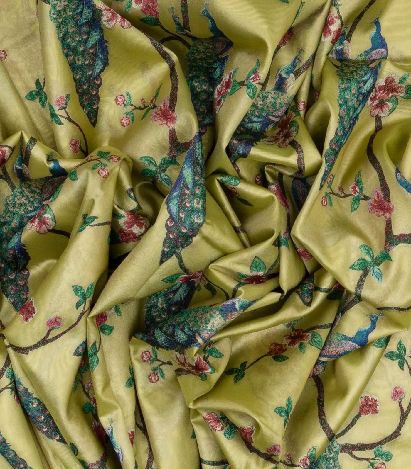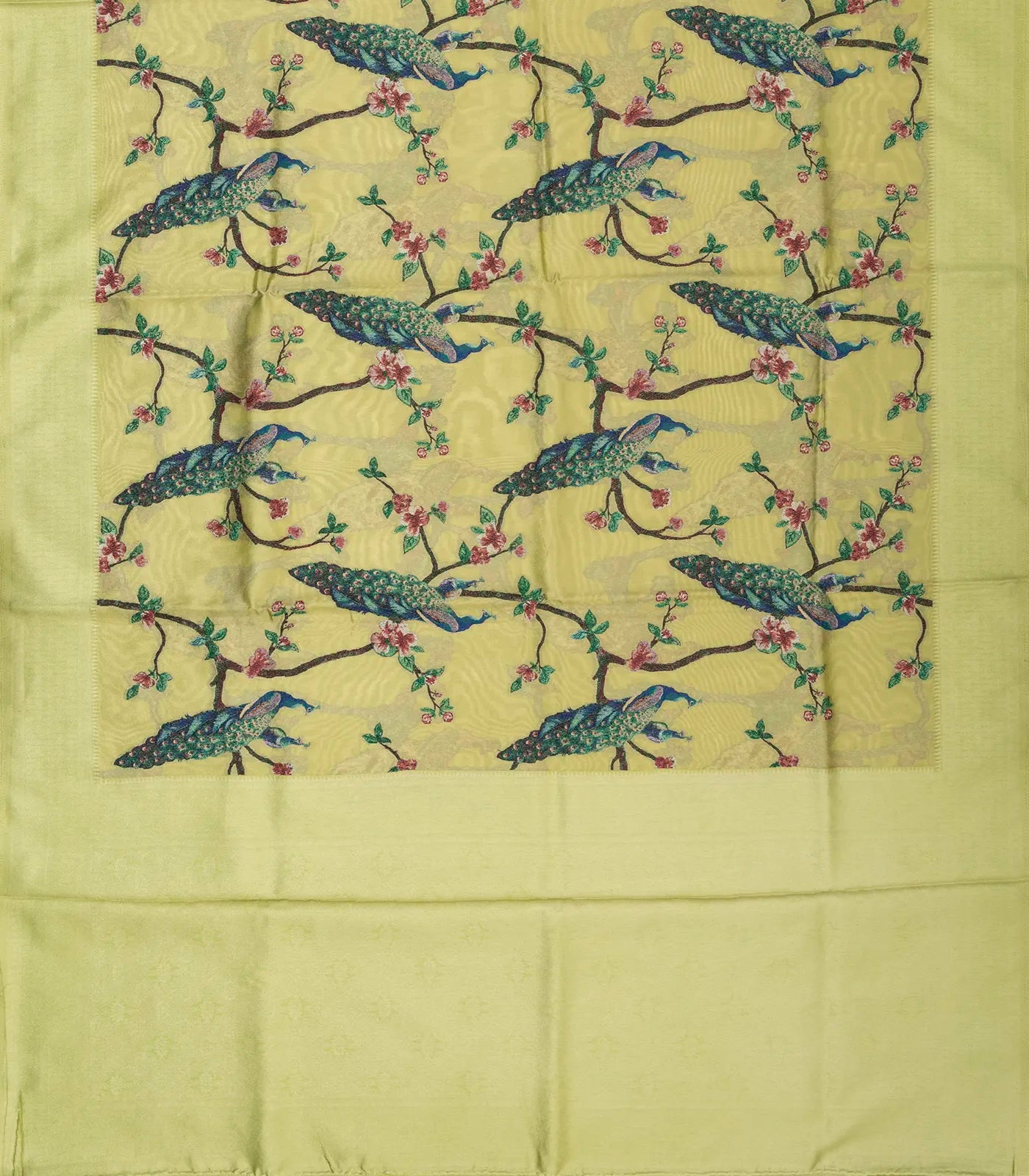 Light Green Woven Blended Soft Silk With Digital Thread Work Peacock motifs-BL3552