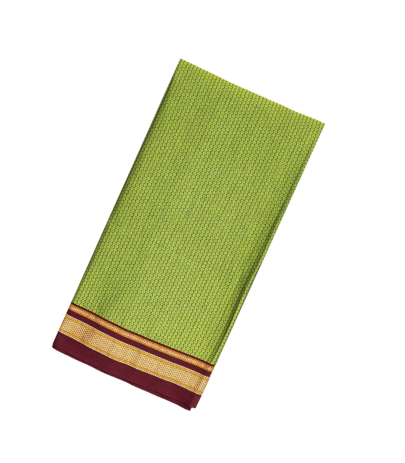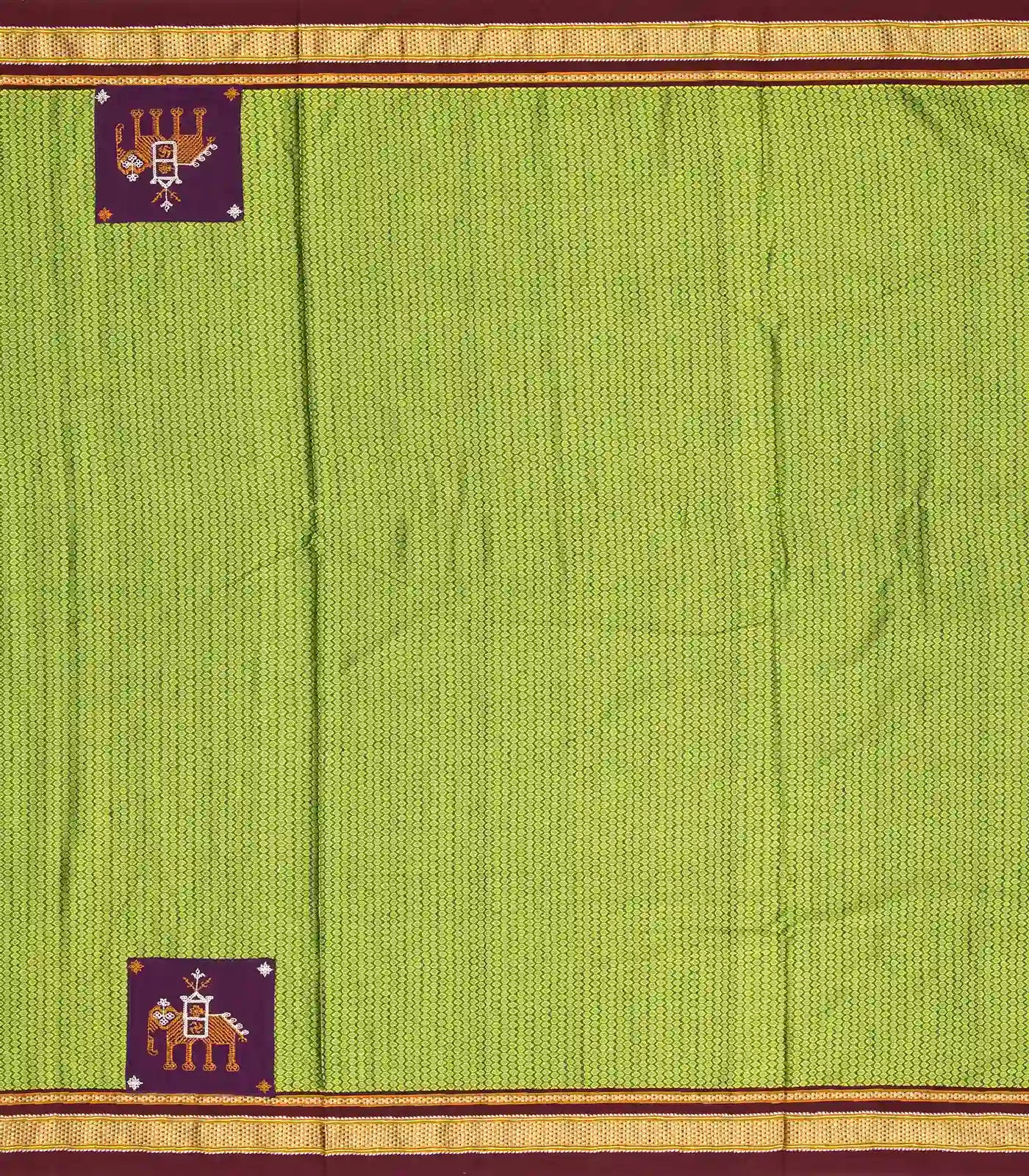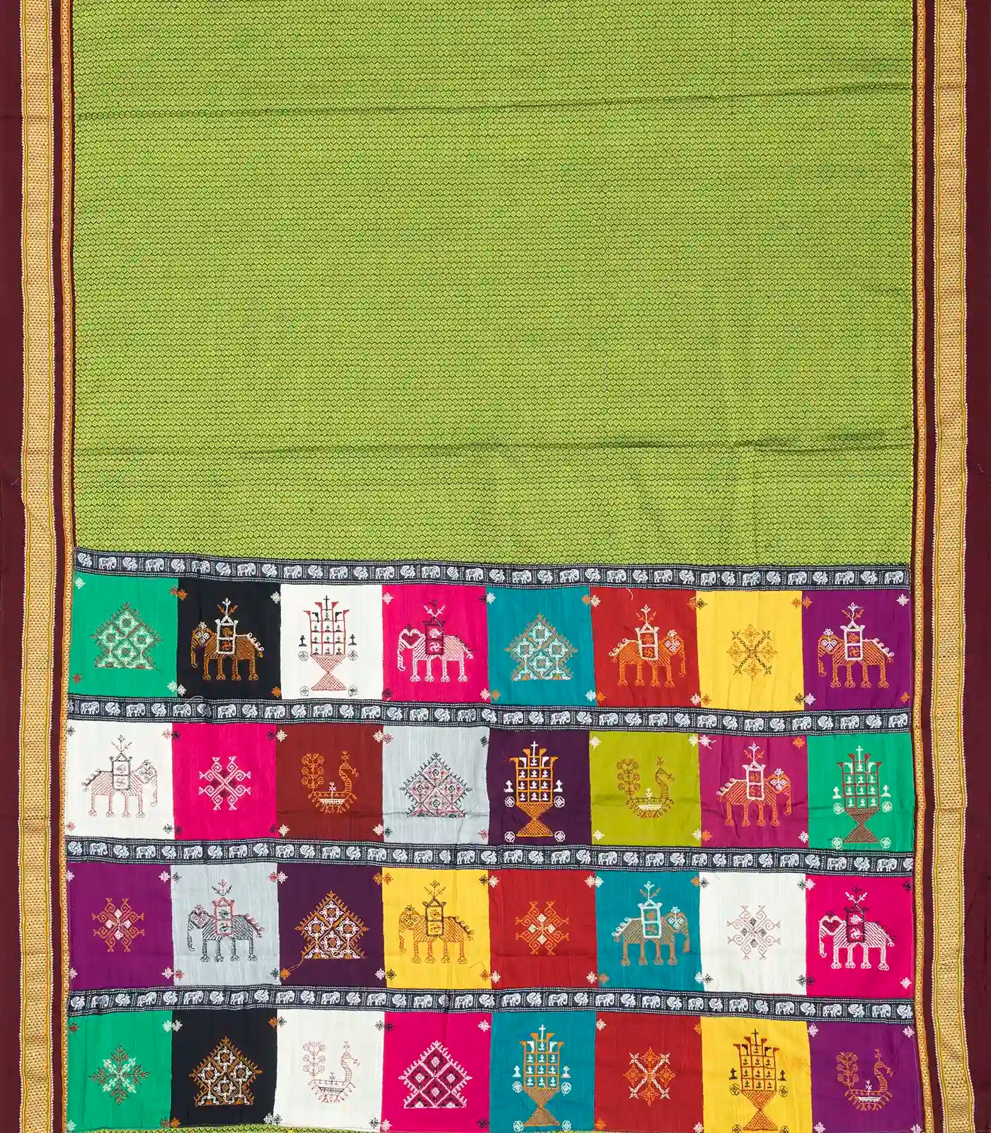 Light Green Woven Cotton Saree With Diamond Motifs & Kasuti Hand Embroidery Pallu-EN1761
