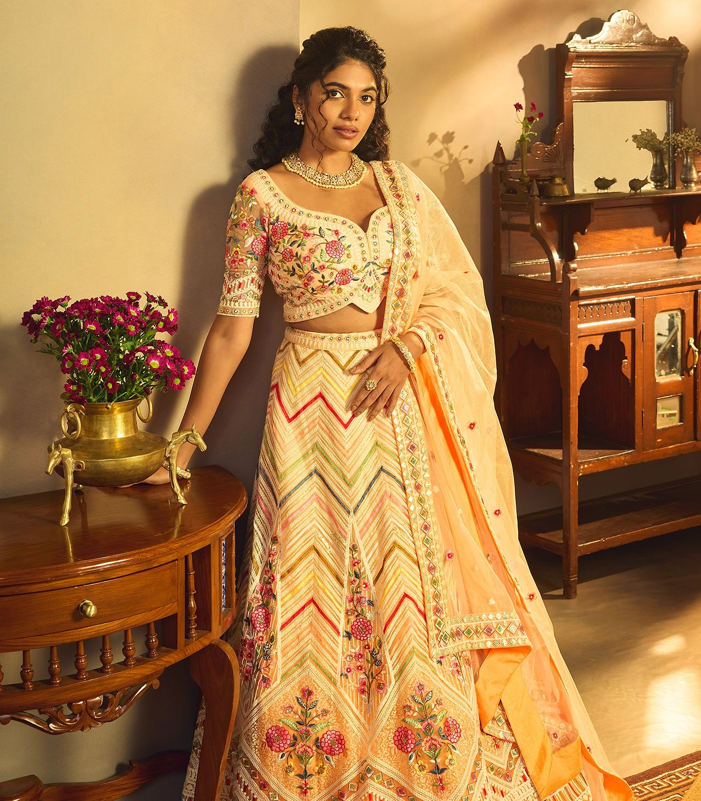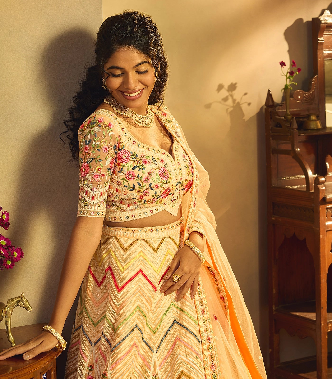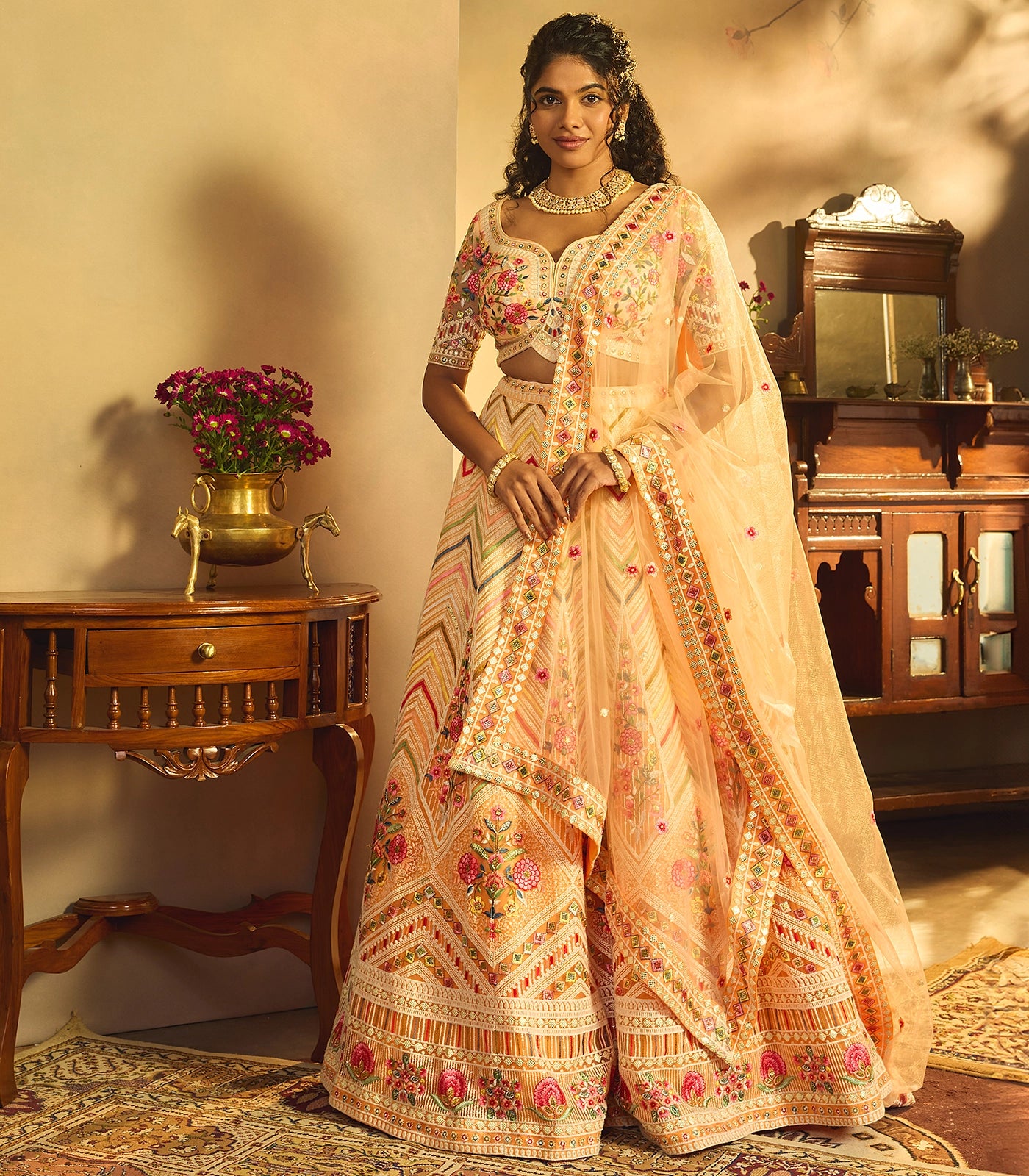 Light Peach Chevron Charm Festive Lehenga Set-SK5112