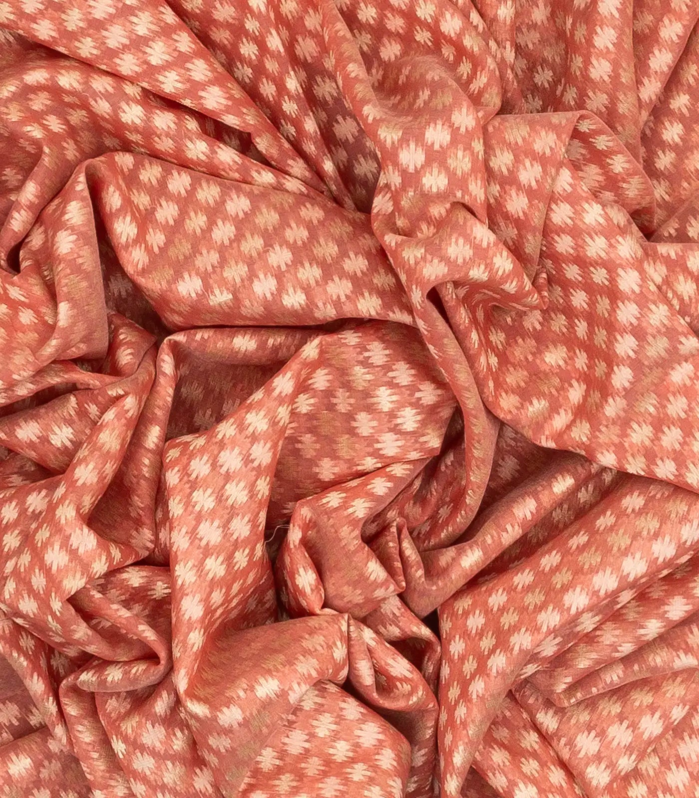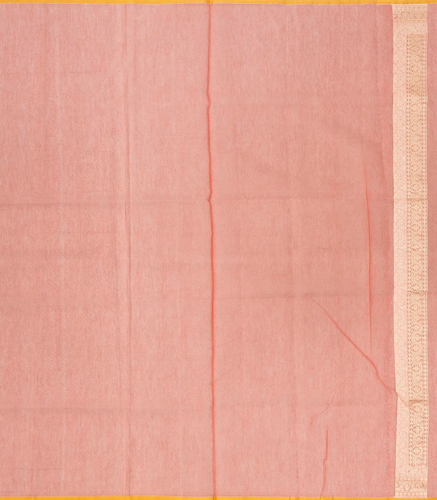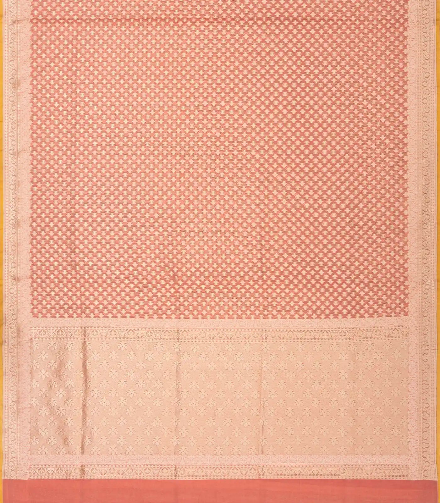 Light Peach Handloom Banarasi Cotton Saree With Floral Motifs-BE1341