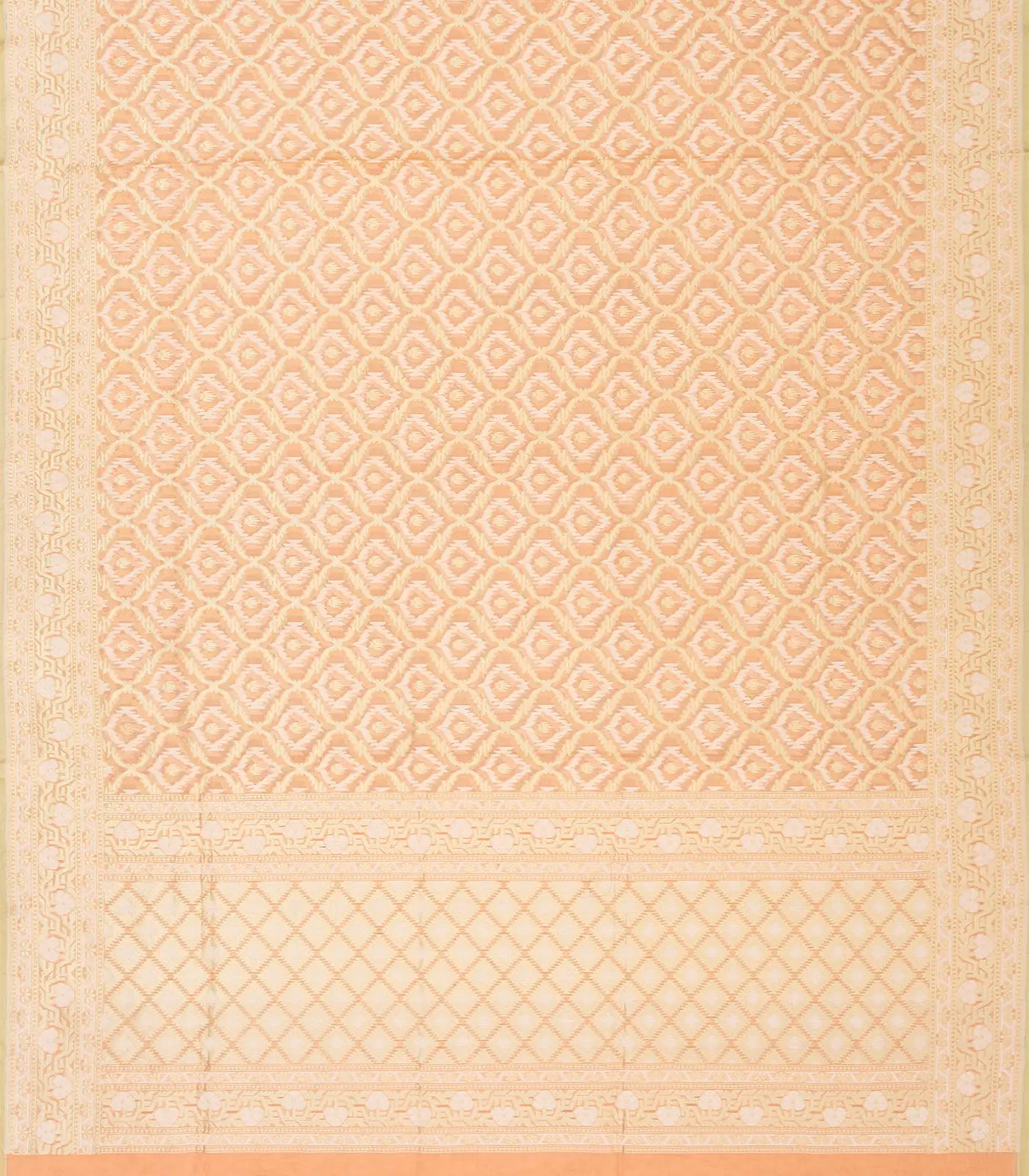 Light Peach Handloom Banarasi Cotton Saree With Jaal Motifs-BE1344