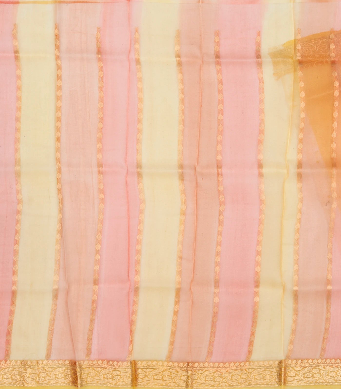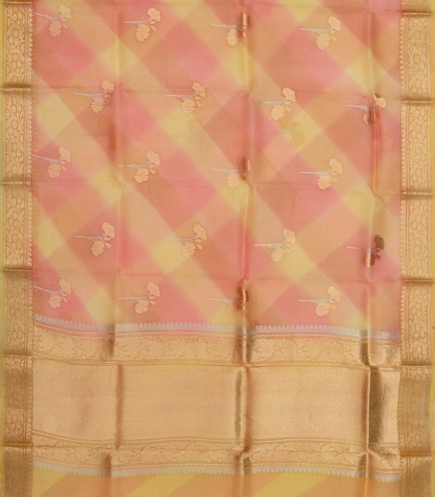 Light Peach Handloom Banarasi Organza Silk Saree With Floral Motifs-BE1680