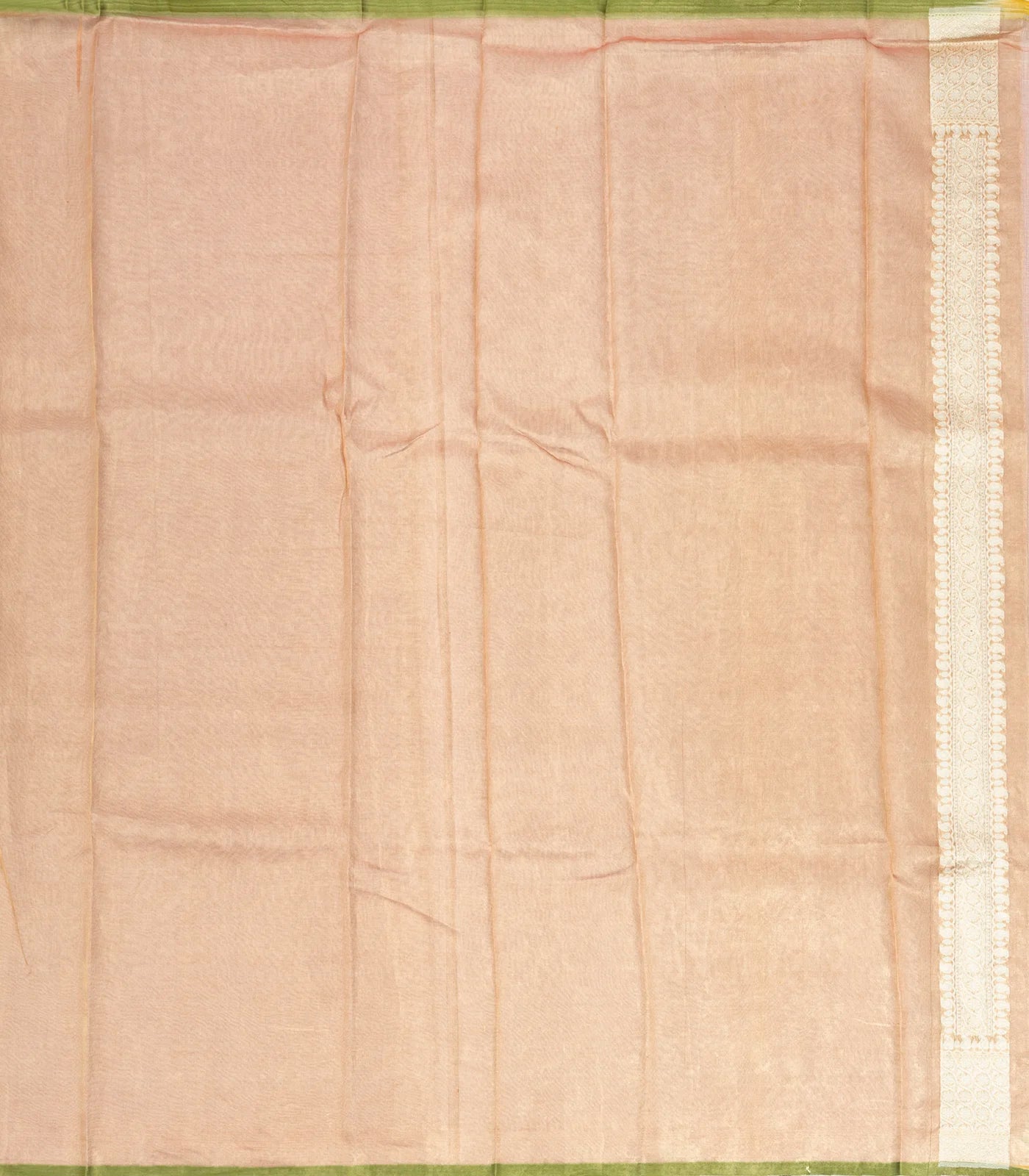Light Peach Handloom Banarasi Tissue Silk Saree With Floral Vine Motifs-BE1266