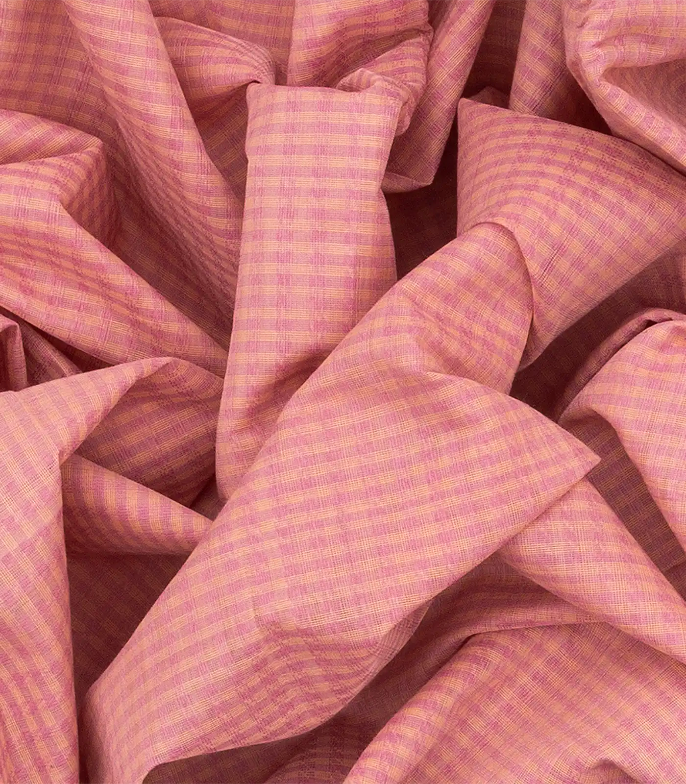 Light Peach Handloom Chirala Silk Cotton Saree With Checks-Light Peach