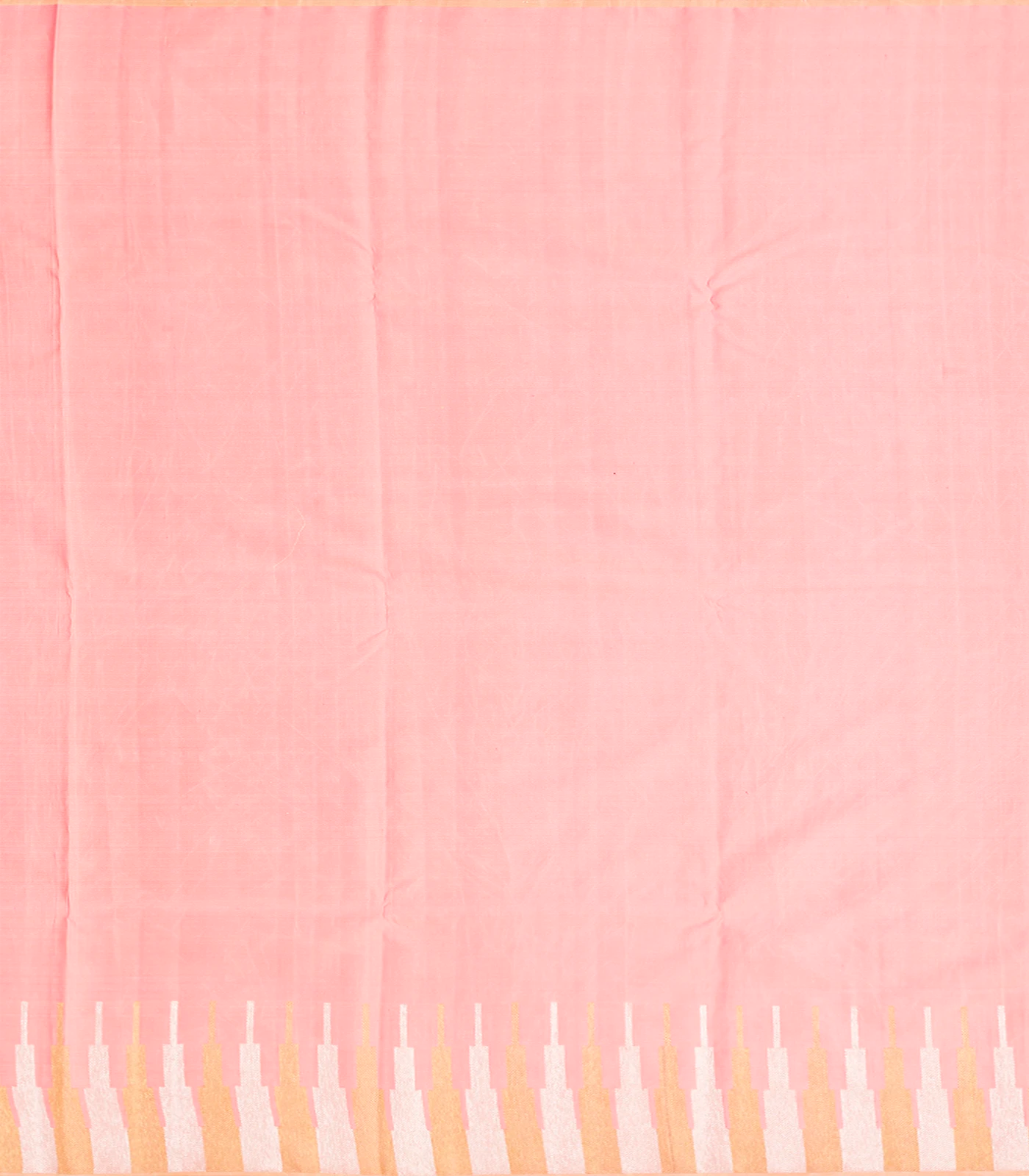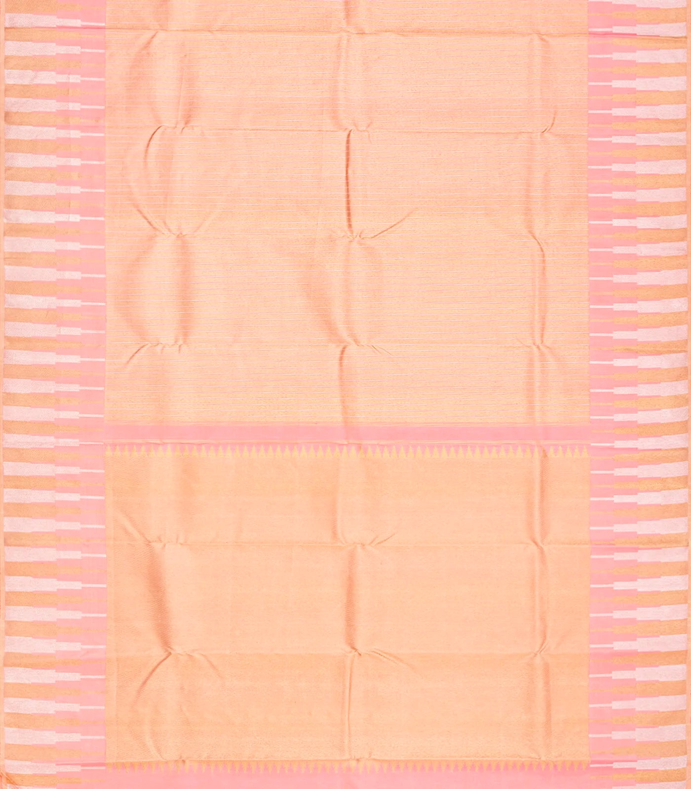 Light Peach Handloom Kanchipuram Silk Saree With Stripes-Light Peach