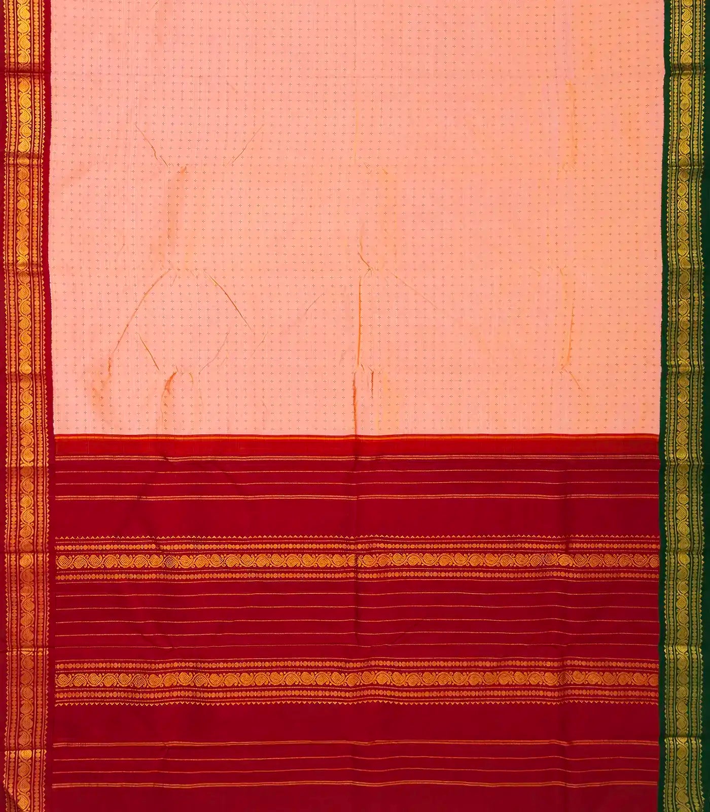 Light Peach Handloom Korvai Kanchipuram Silk Saree With Plus Motifs